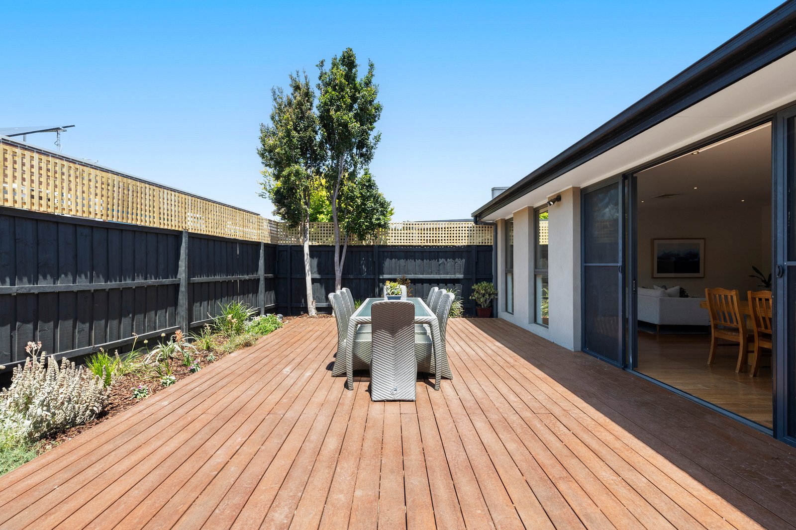 Extending entertaining with a decked outdoor area in the broad backyard, there’s at least two car parking including an auto-garage... and more than enough garden space for pets and kids.