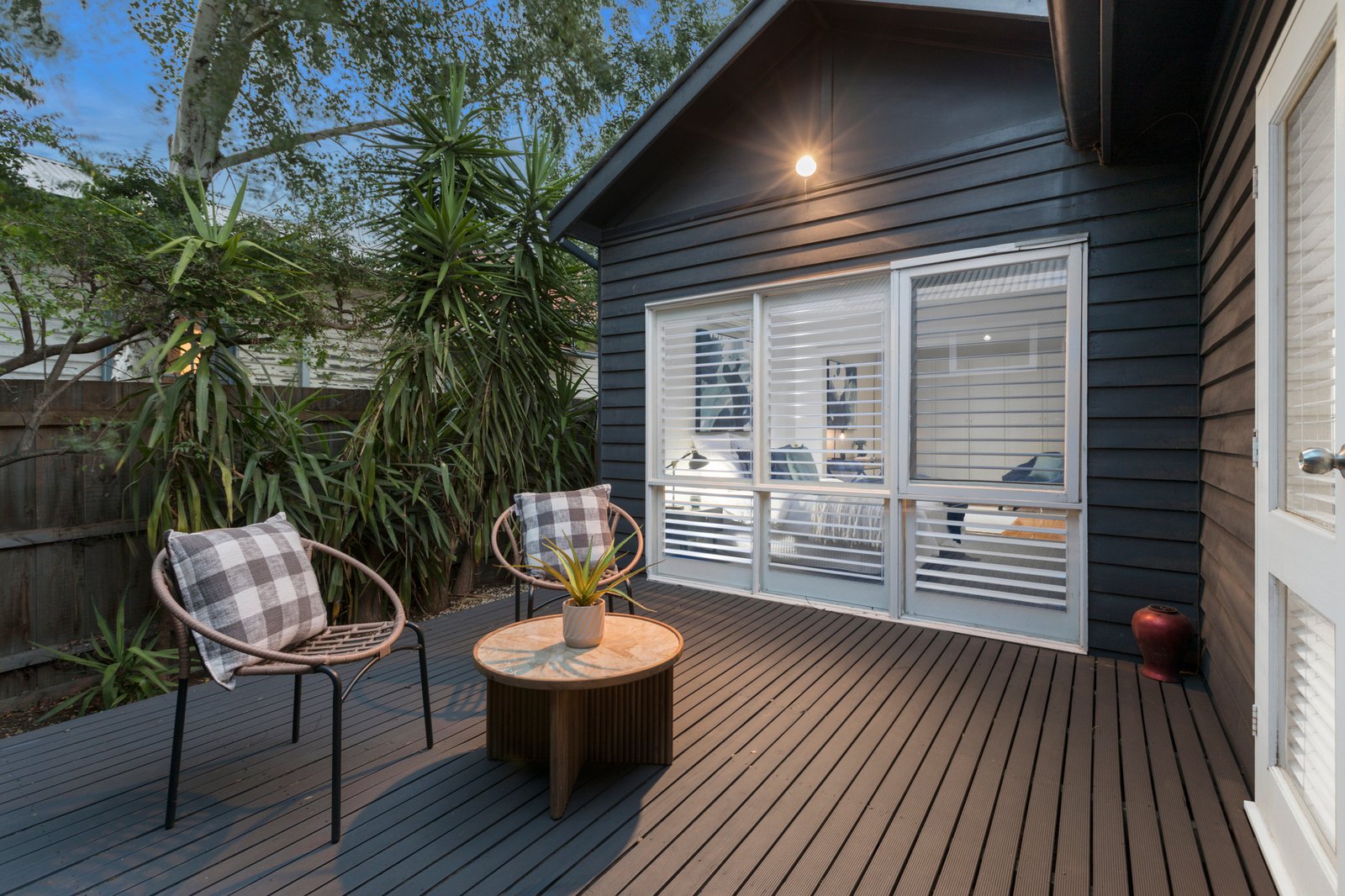 Cleverly accommodating with a second quiet deck for the private master-suite (with designer ensuite) and well-zoned kids' bedrooms alongside a stylish skylit main bathroom, this flexible design adapts to a growing family with a super-sized multi-purpose second bedroom extended by a home-office/retreat.