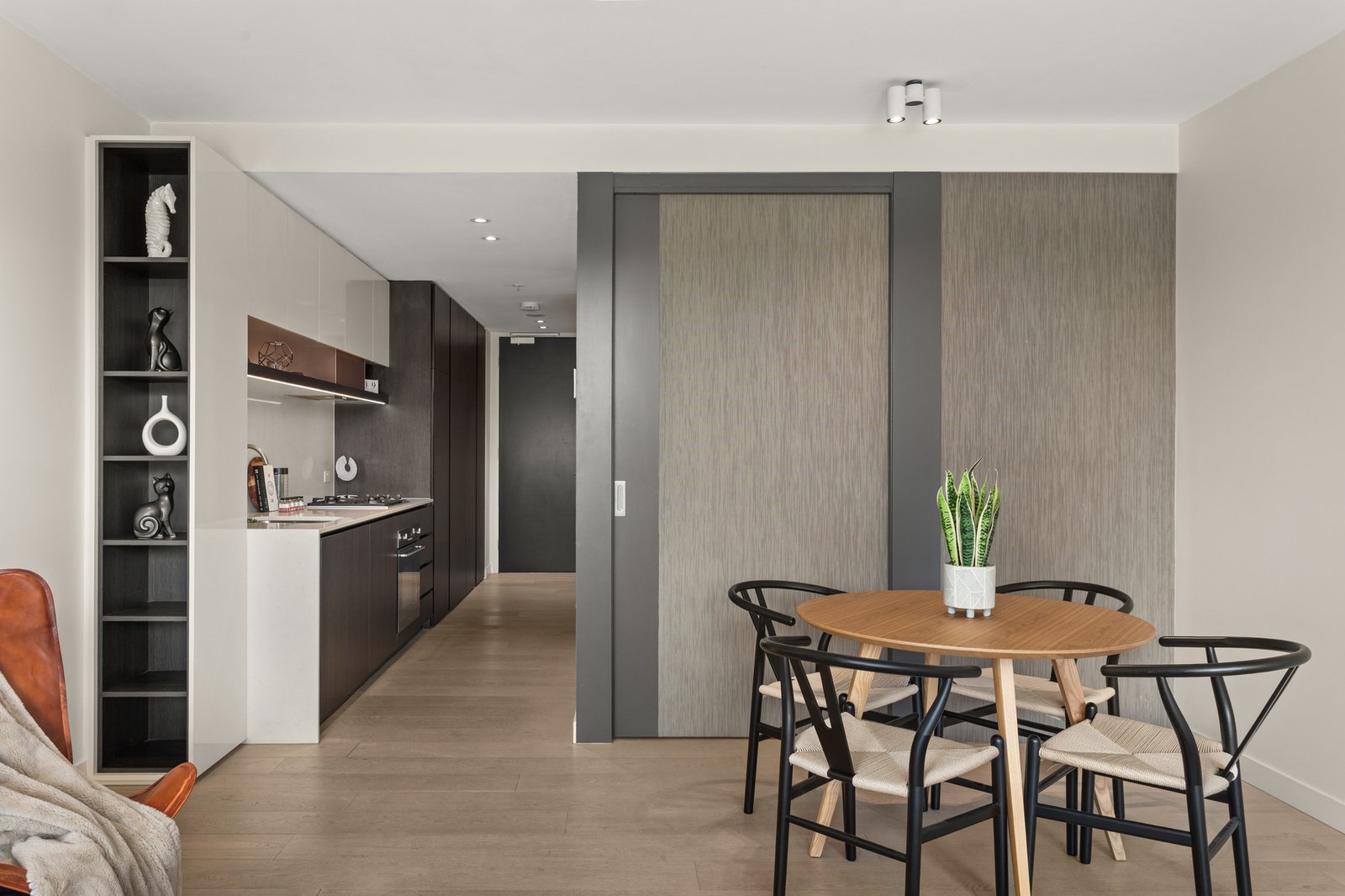 The light-filled open plan living and dining area flows seamlessly to a private balcony, creating the perfect space to relax or entertain. The sleek kitchen is well-appointed with quality appliances and smart storage, while the bedroom is generously sized and serviced by a modern bathroom.