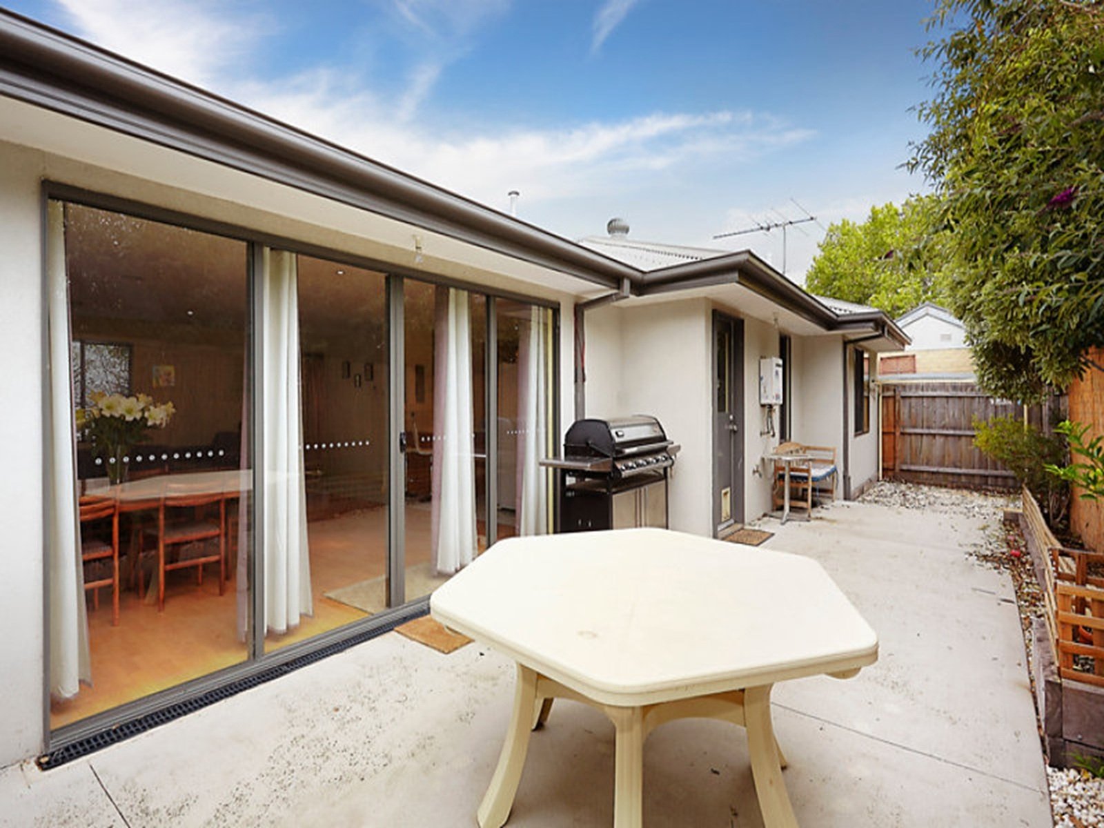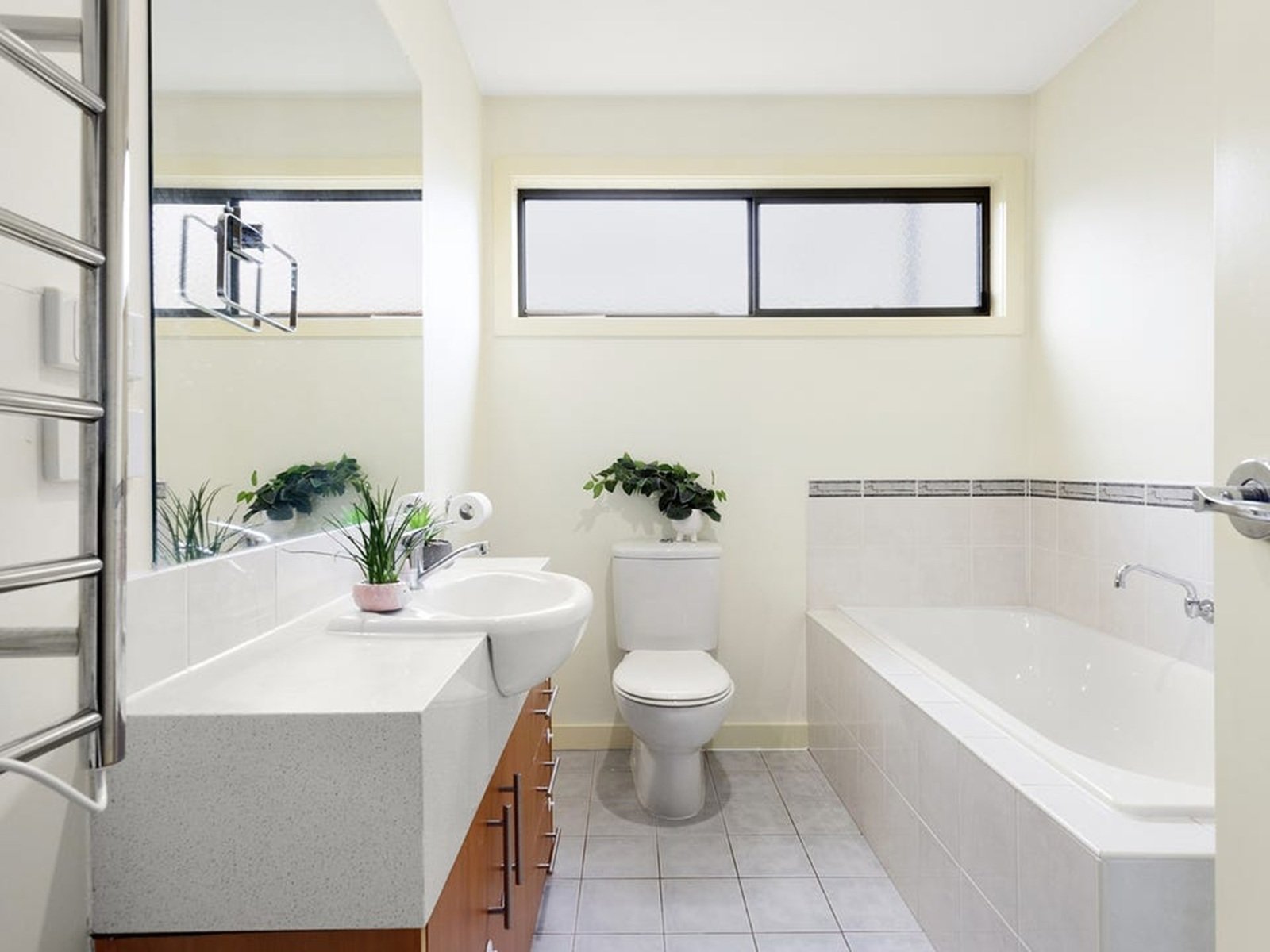 The light-filled living zone showcases floating floorboards, split-system heating and cooling, and sliding glass doors that open to a low-maintenance rear courtyard. The master bedroom is quietly located at the rear of the home and includes built-in robes and a private ensuite. Two additional bedrooms are serviced by a central bathroom with a separate shower and bath.