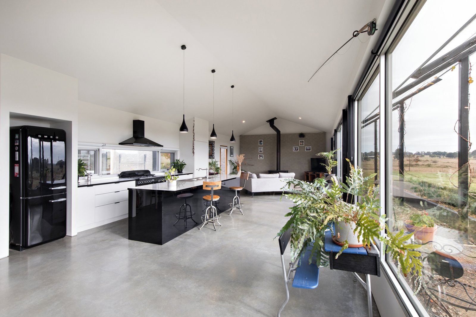 - Light-filled open-plan kitchen, dining, and living area with serene views