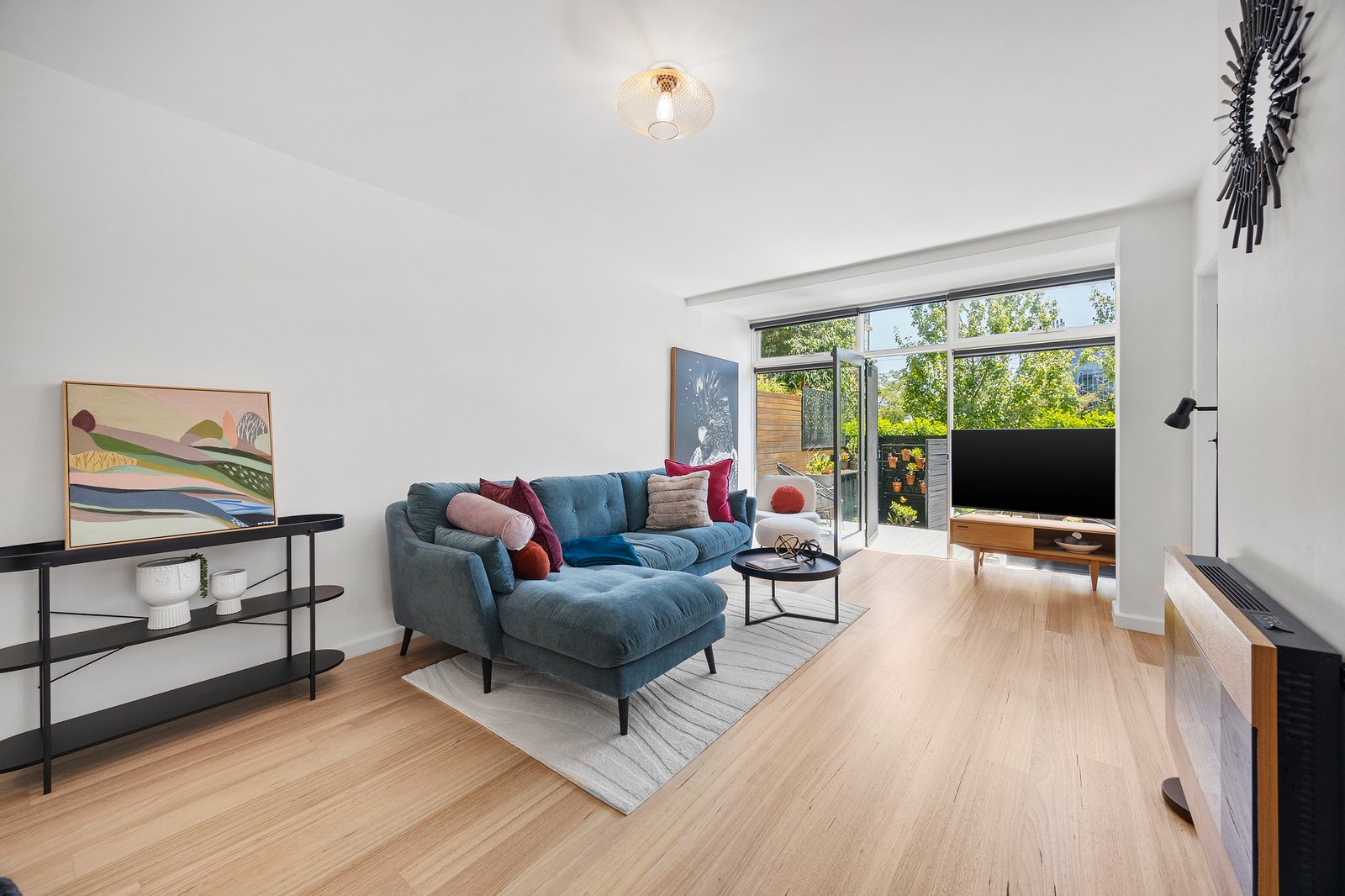 Immaculately presented and recently renovated, this stylish, one of a kind, oversized ground floor apartment delivers light-filled living in the heart of South Yarra. Polished hardwood floors add warmth underfoot, while floor-to-ceiling windows invite sunshine and frame calming rear garden views. The open plan living and dining zone flows to a private courtyard for relaxed entertaining, and the secure off-street parking provides everyday ease. One spacious bedroom with built-in robe is serviced by a modern bathroom with floor-to-ceiling tiling and shower over bath