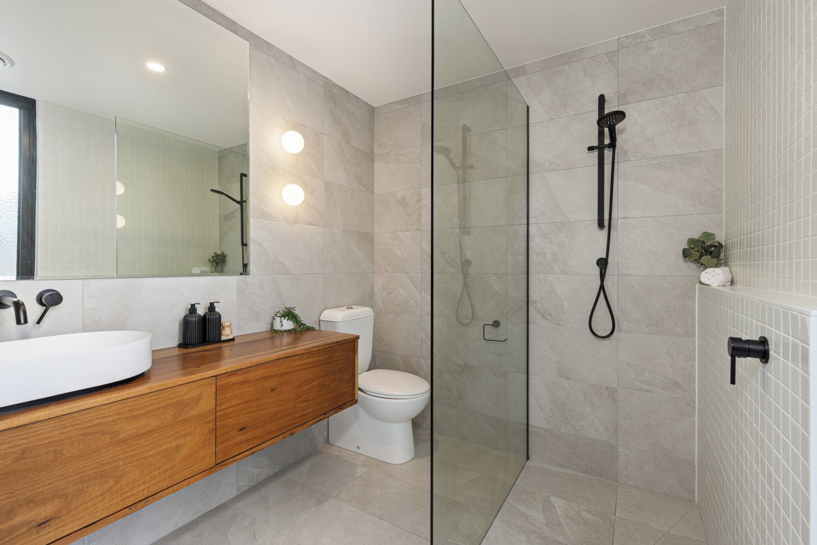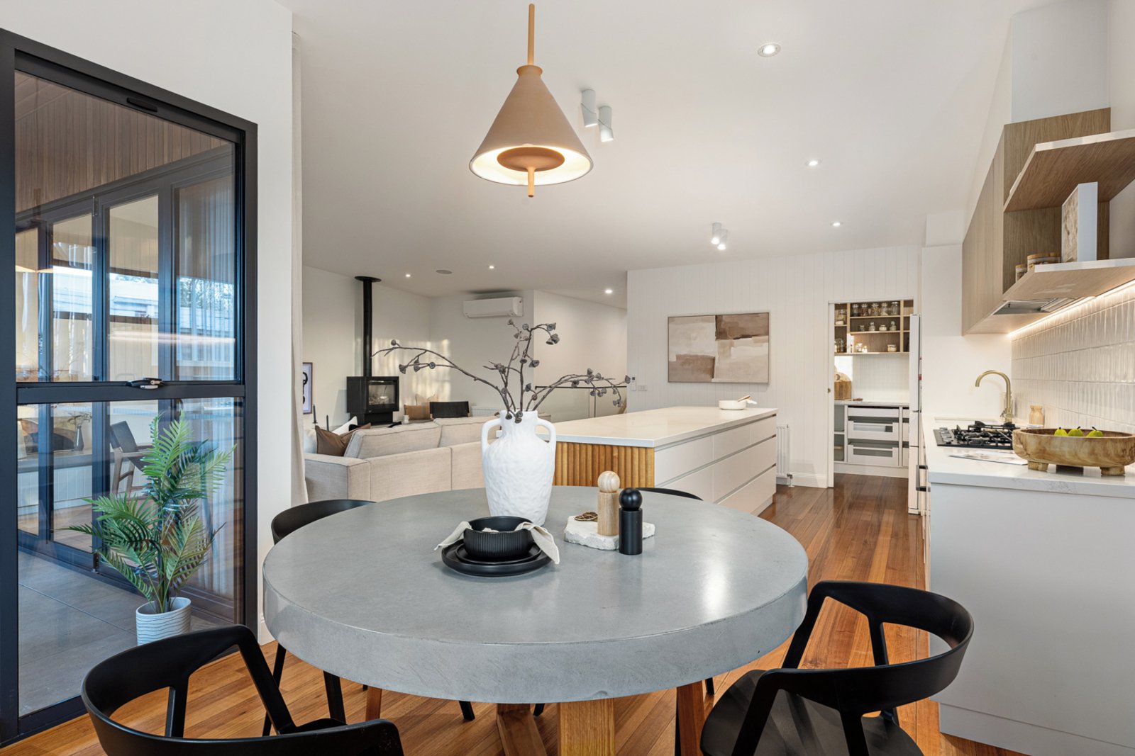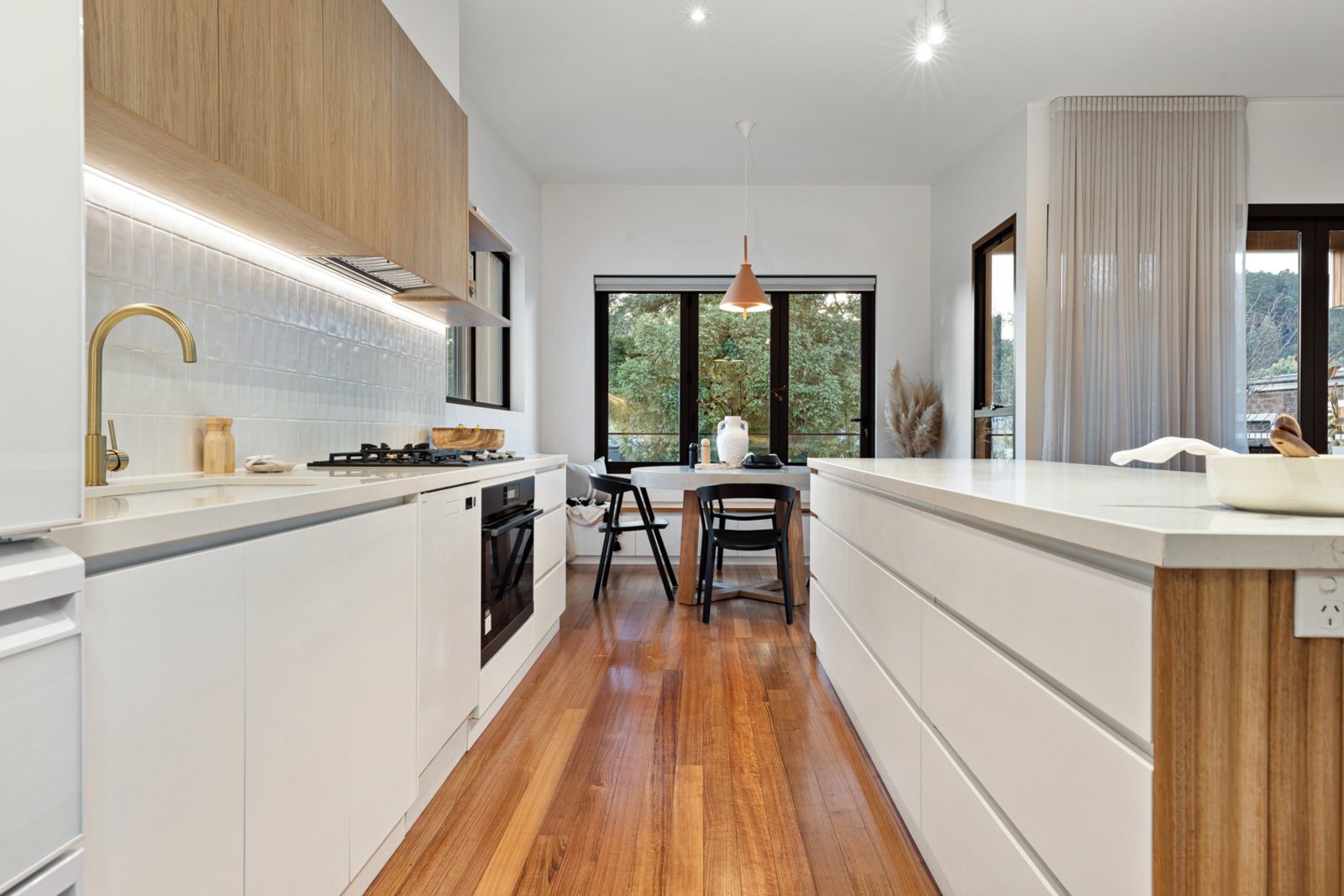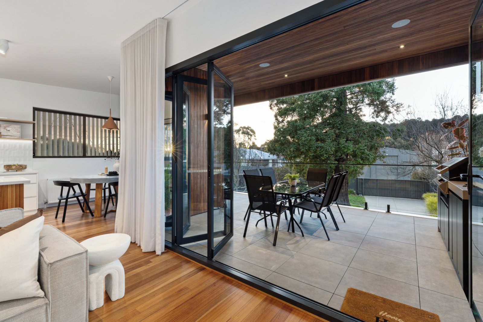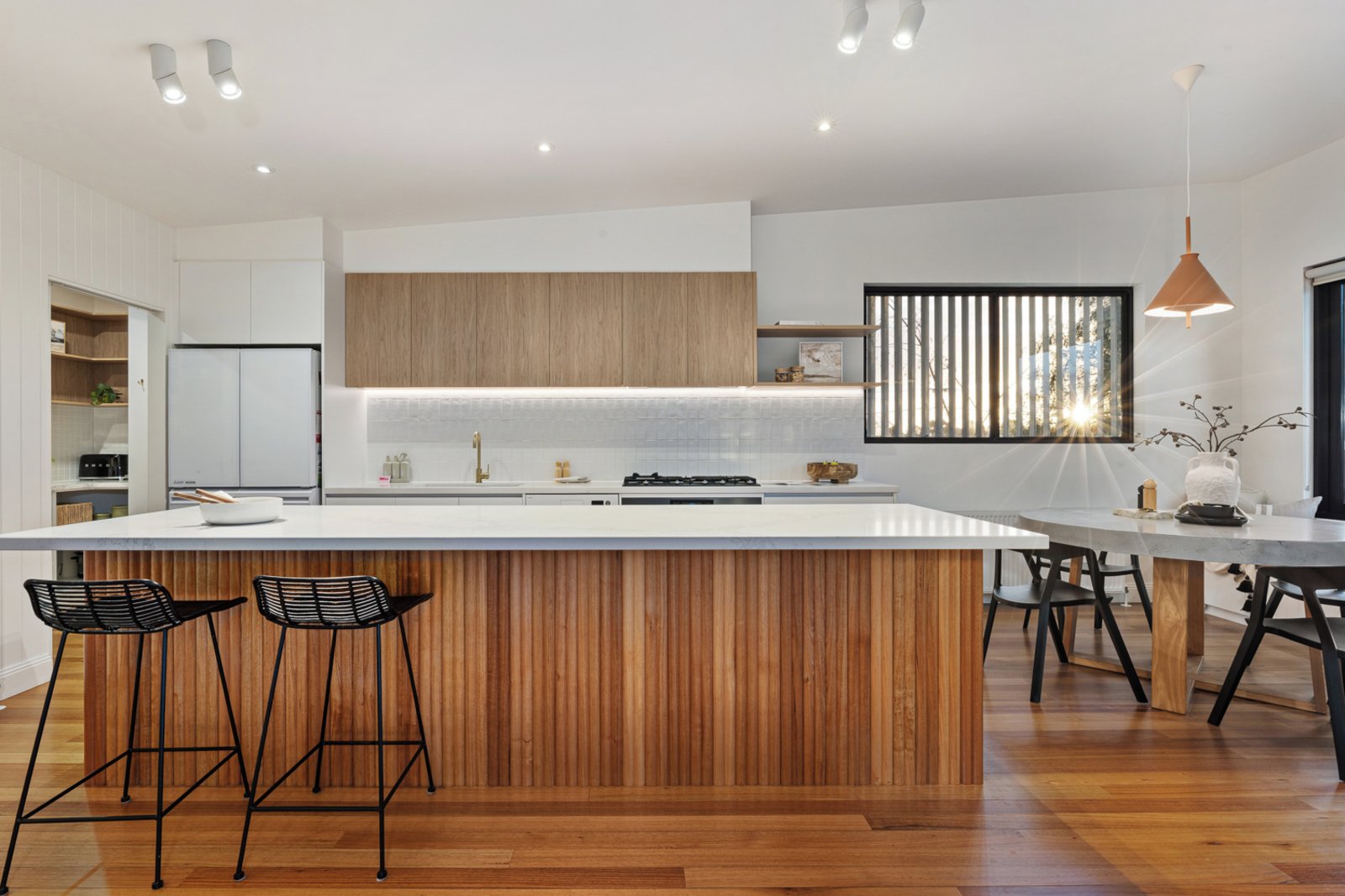 - Open plan kitchen, meals and living area opening up to an impressive balcony with timber cladding and a built-in barbeque