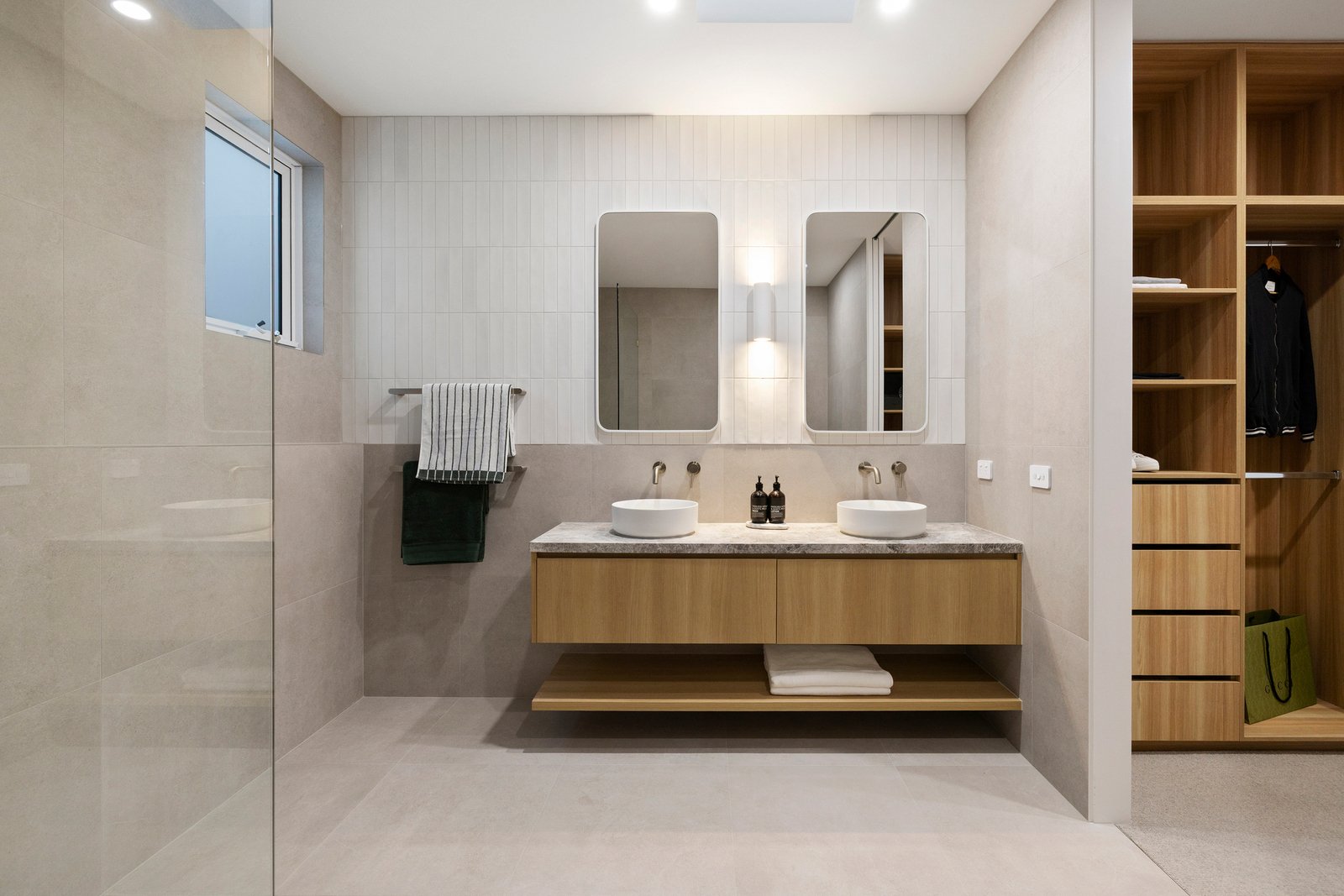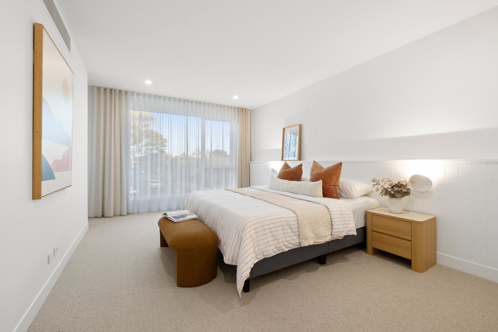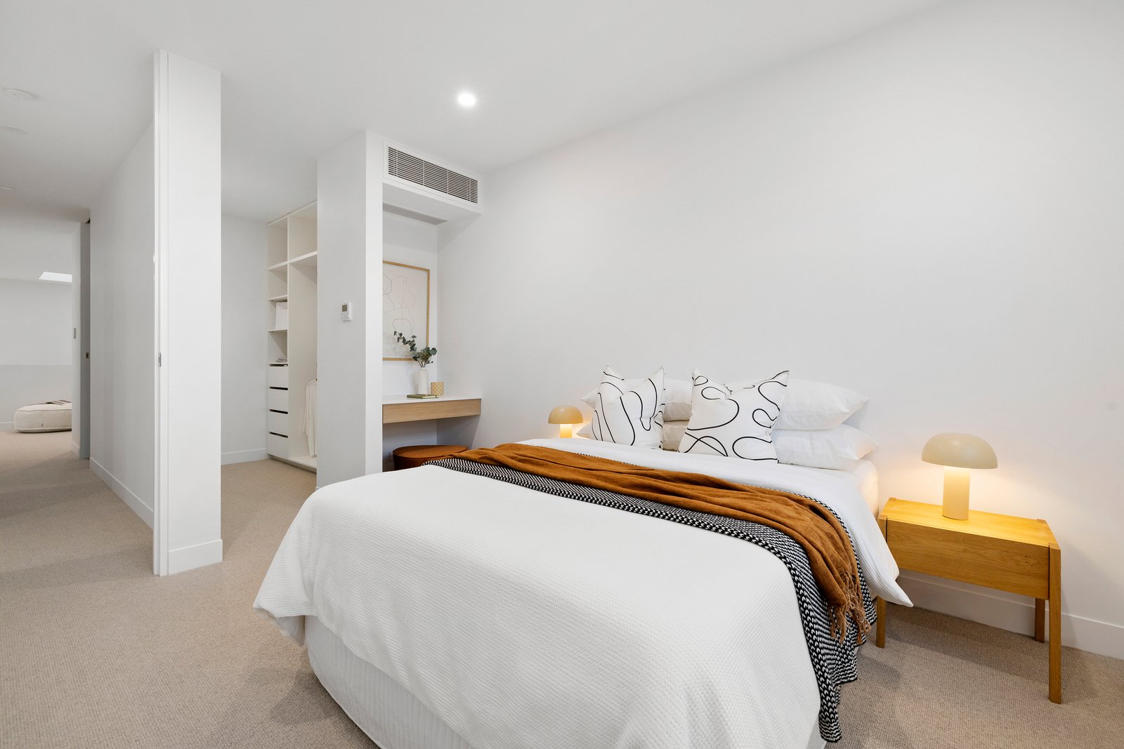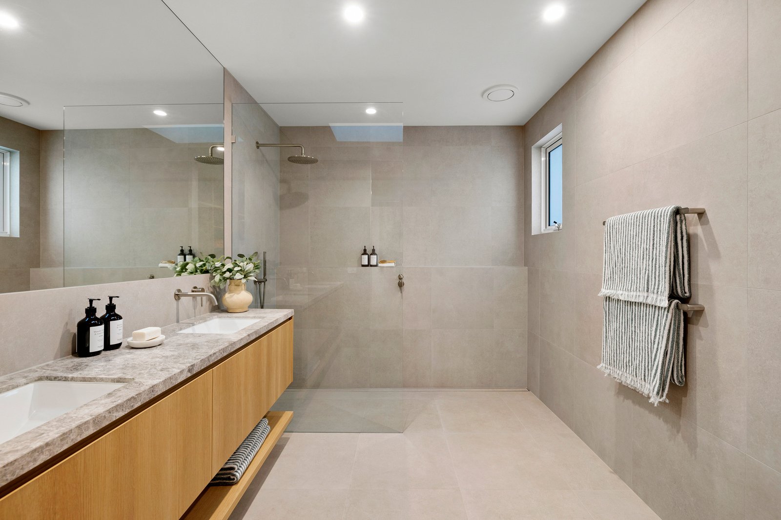 The ground floor plays host to the first of two generous ensuite bedrooms giving the coveted option for an accessible main suite. Upstairs families will love the versatile retreat with scope to work or study from home – also up here is the tranquil primary suite along with two further superb double bedrooms and the magnificent family bathroom. Masses of storage is a feature throughout all bedrooms, while the decadent bathrooms are a sight to behold thanks to stretches of exquisite stone, quality cabinetry and chic ABI brushed nickel tapware.