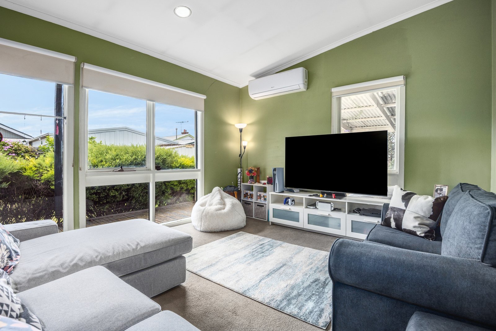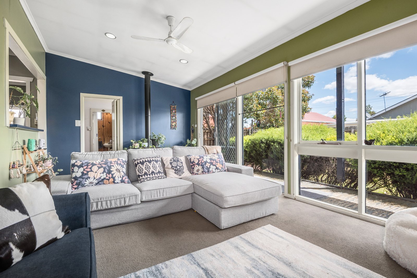 The spacious rear living area features a gas log fire for a cosy ambiance, plus split system heating and cooling for year round comfort. Glass sliders open up to the rear verandah for seamless connection to the outdoors. A large laundry with storage and separate powder room completes the well-functioning floorplan.