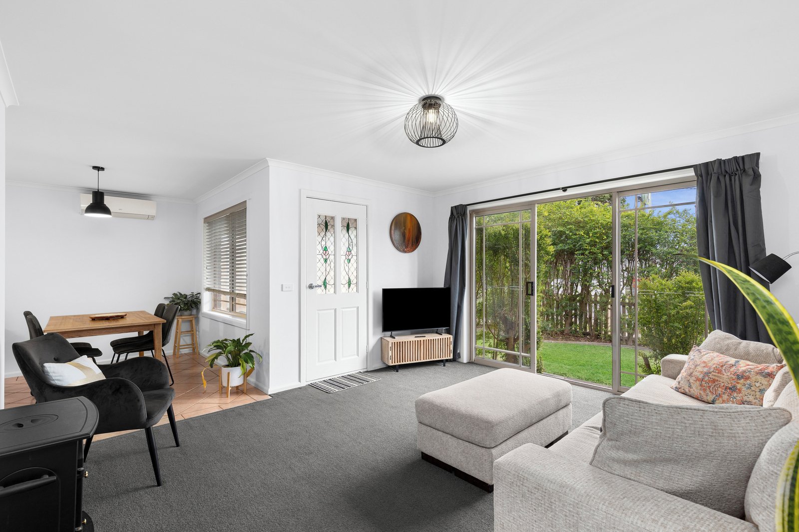- Spacious living and dining room with split system heating and cooling for year-round comfort