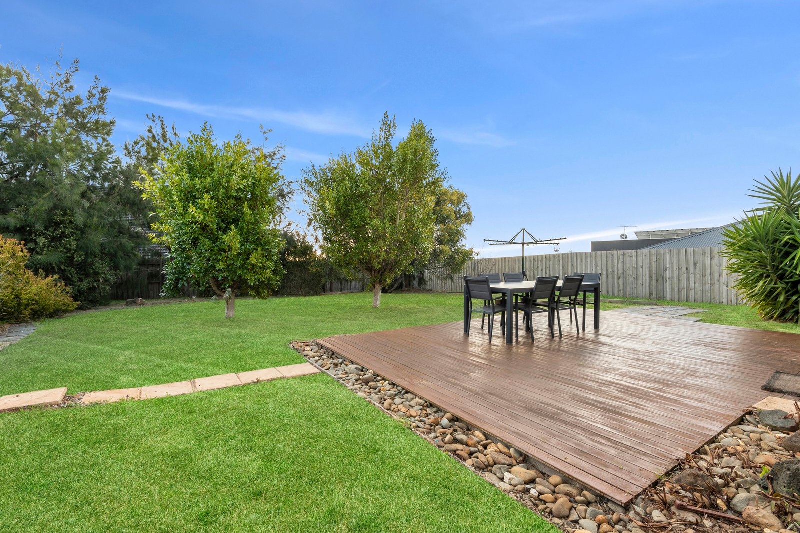 Outside, the rear deck provides a private space to relax in the sun or enjoy a barbecue with family and friends. The expansive backyard provides plenty of space for the kids or pets to play, with established trees creating a tranquil environment.