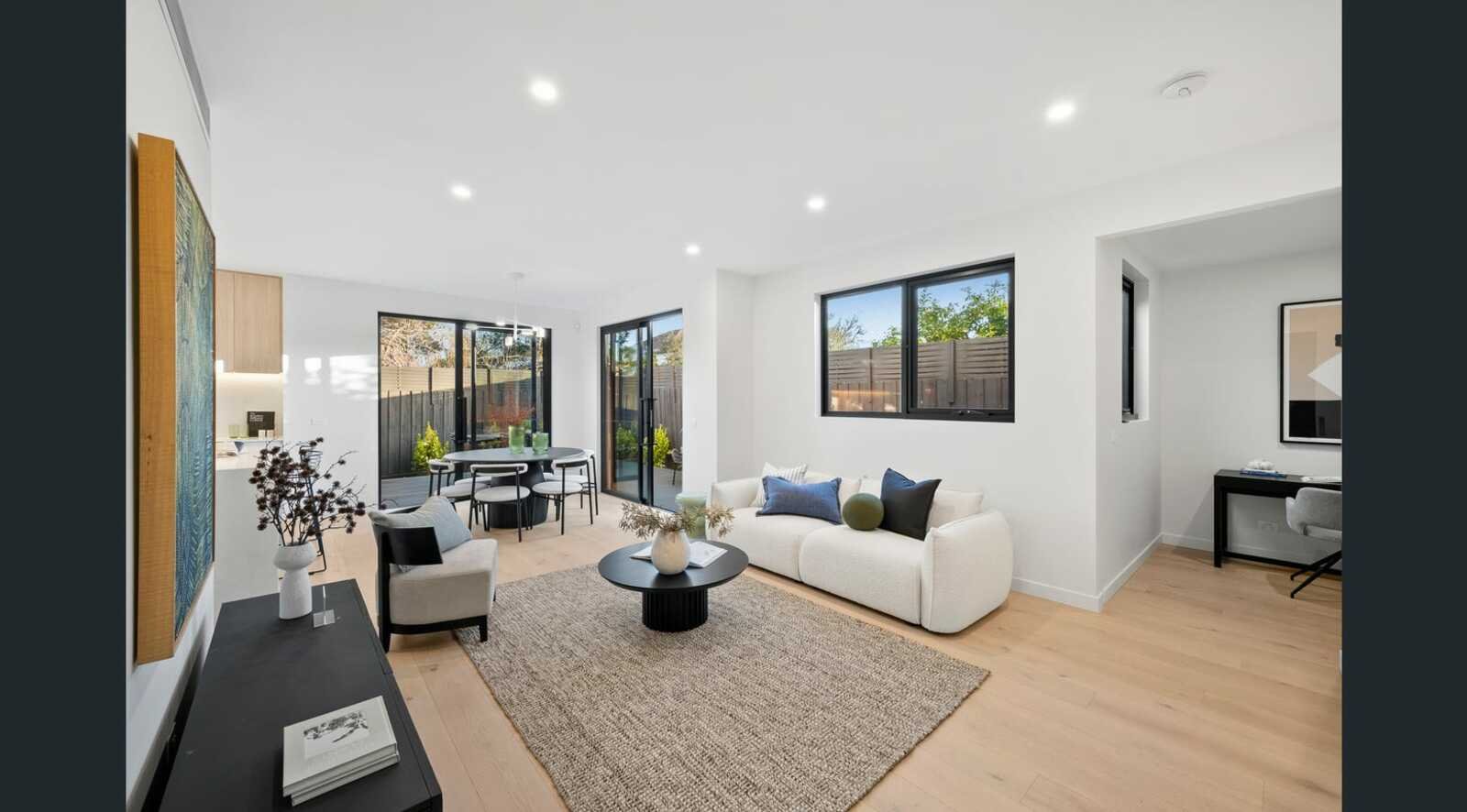 Hideaway with the newest, best and most beautifully central! Expertly crafted by leading local builders, BFG Construction, this just-completed three-bedroom plus home-office, 2.5 bathroom rear home offers privacy, prestige, and peace — all within a walk of major retail and rail. Downstairs is designed for work and play with a deck-wrapped, window-walled open-plan zone and a quiet home office, while upstairs is dedicated to relaxation with a serene bedroom level featuring a plush fan-cooled master suite and a versatile second living/media lounge.