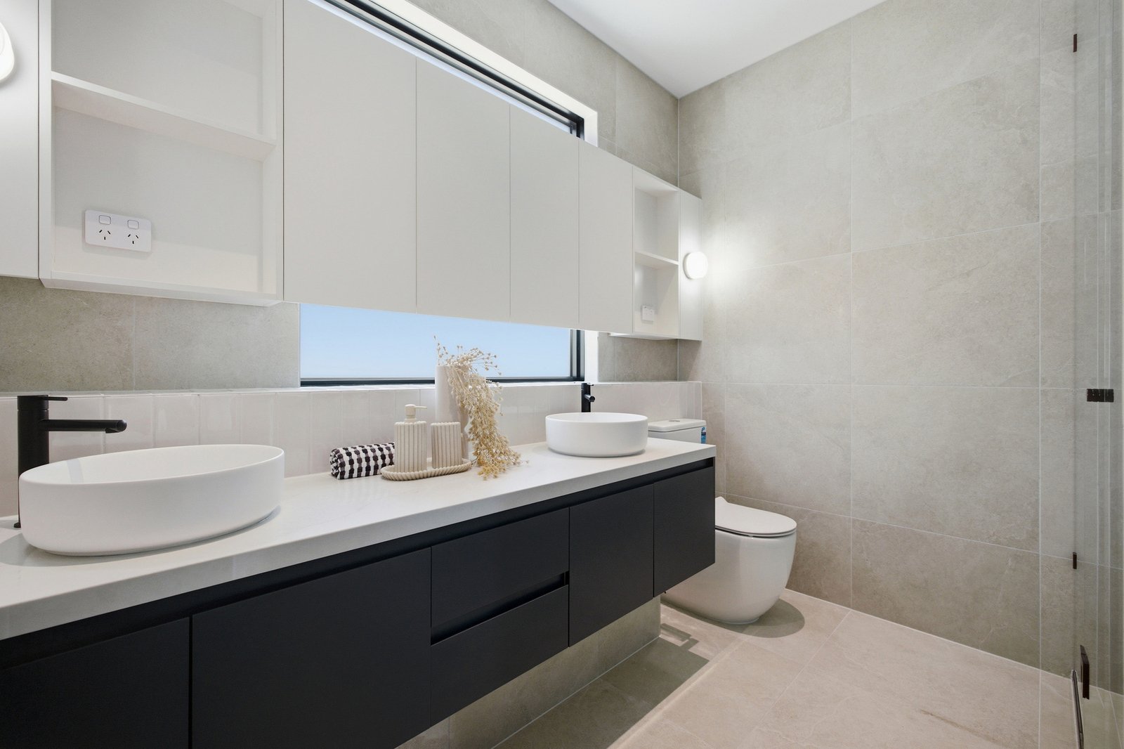 A sleek family bathroom and guests’ powder room are also offered together with split system heating/cooling, while InSona lighting and a double auto garage with house access and rear roller door round off a standout setting.