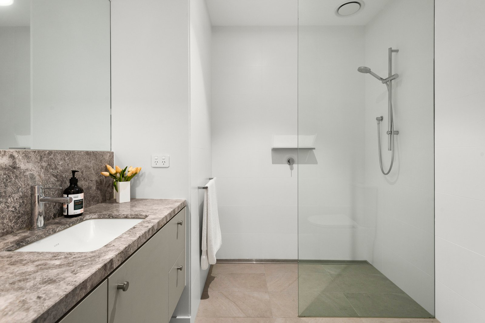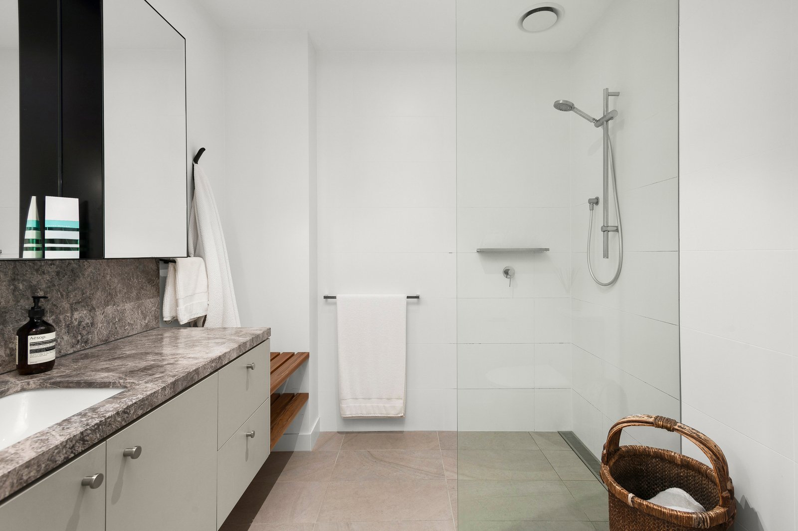 Both bedrooms are generously proportioned and robed, including a master retreat with walk-in robe and ensuite, complemented by a second modern bathroom. Additional highlights include split-system heating and air conditioning, a secure basement car space with storage cage, access to a stunning rooftop entertaining terrace, and the option to lease an additional car space for added convenience.