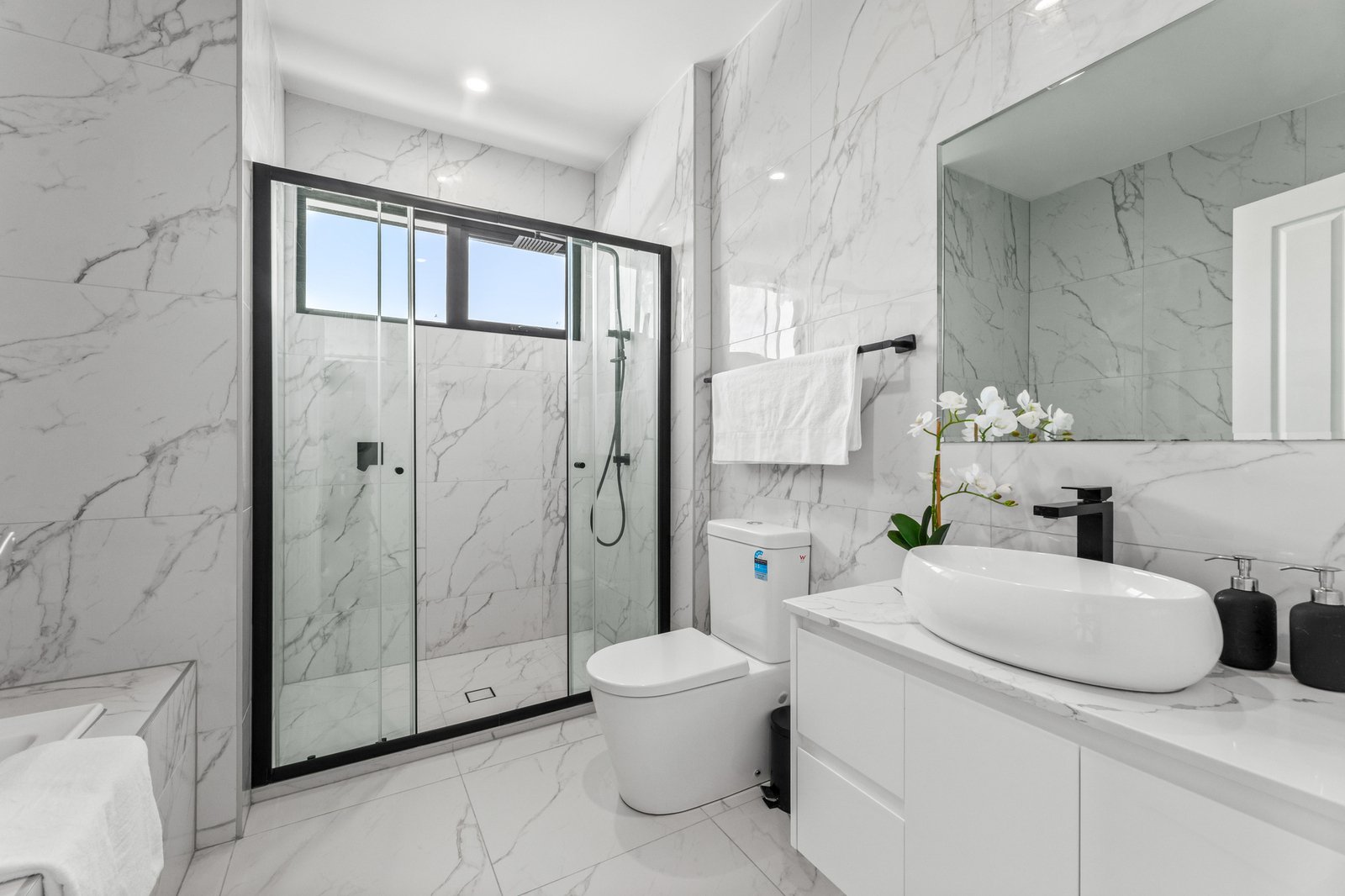 On the ground floor, you’ll find one of the four robed bedrooms, serviced by the 3rd bathroom with toilet and separate laundry. While upstairs, there is a master bedroom featuring Walk-In-Robe and its own ensuite, Two additional bedrooms sharing a fashionable family bathroom with toilet and bathtub, each of the three bathrooms accompanied with a bright high window, keep your shower area bright while keeping the privacy.