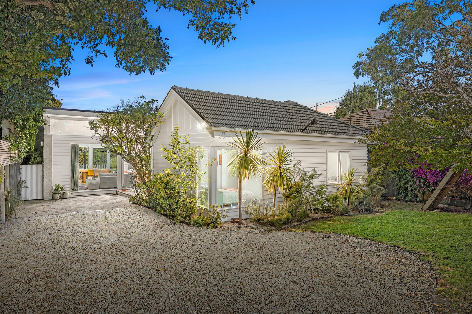 Screened by a high fence with remote-controlled gate entry, this irresistible four bedroom, two bathroom residence presents a confident reimagining of mid-century character, evolved for contemporary family living.