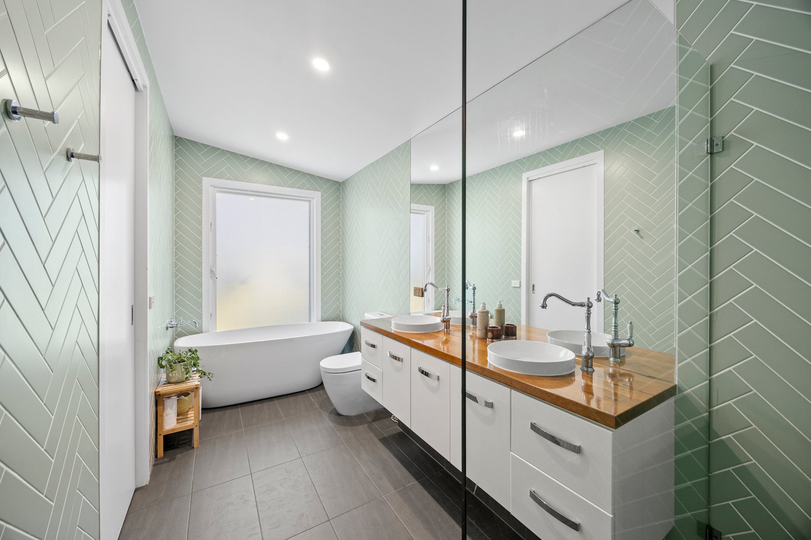 Accommodation is arranged for privacy, with three bedrooms at the front of the home, two with built-in robes, serviced by a well-appointed bathroom with dual vanities. Quietly set to the rear, the main suite enjoys northern light, a walk-in robe, fully tiled twin vanity ensuite and sliding doors opening directly to the garden.