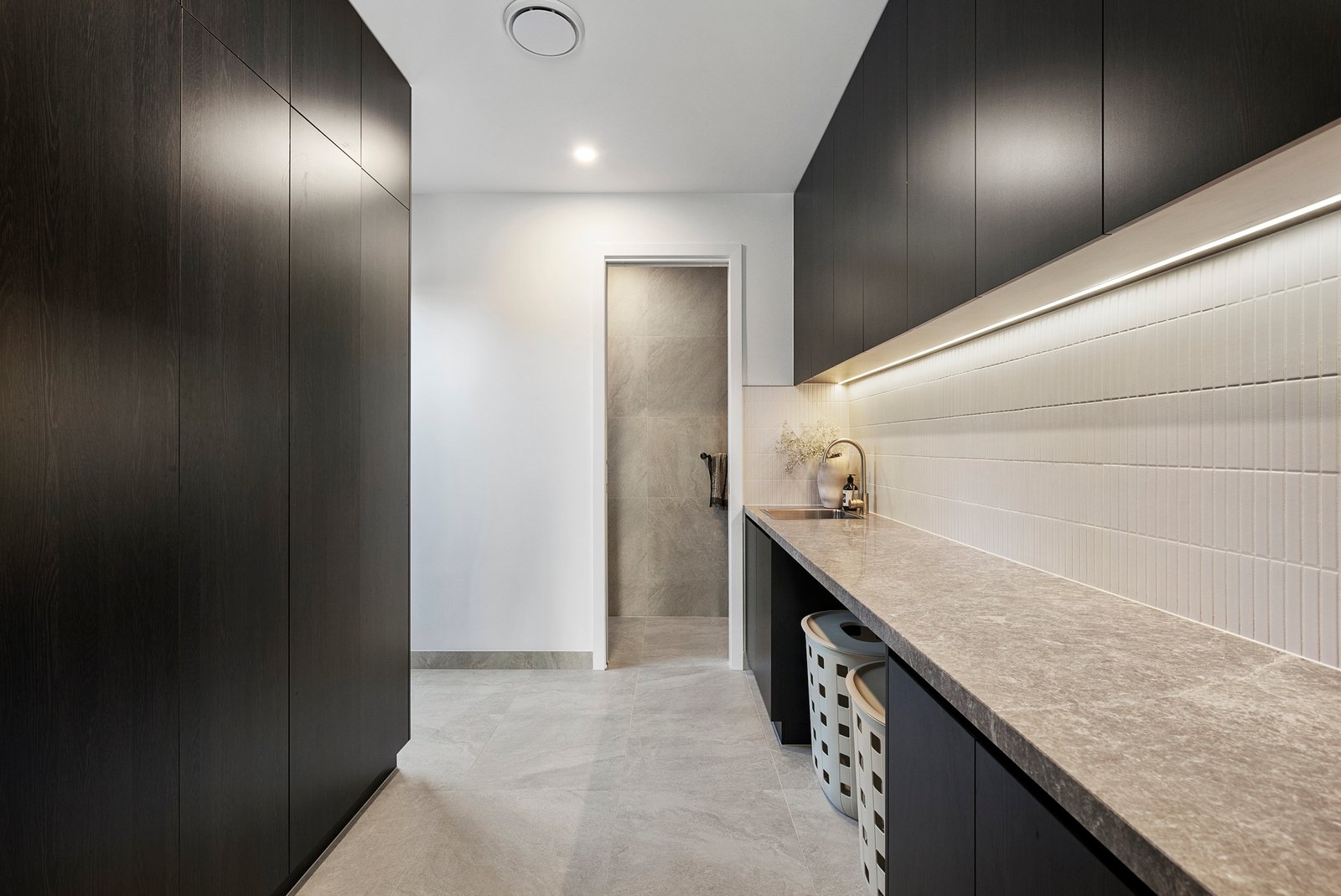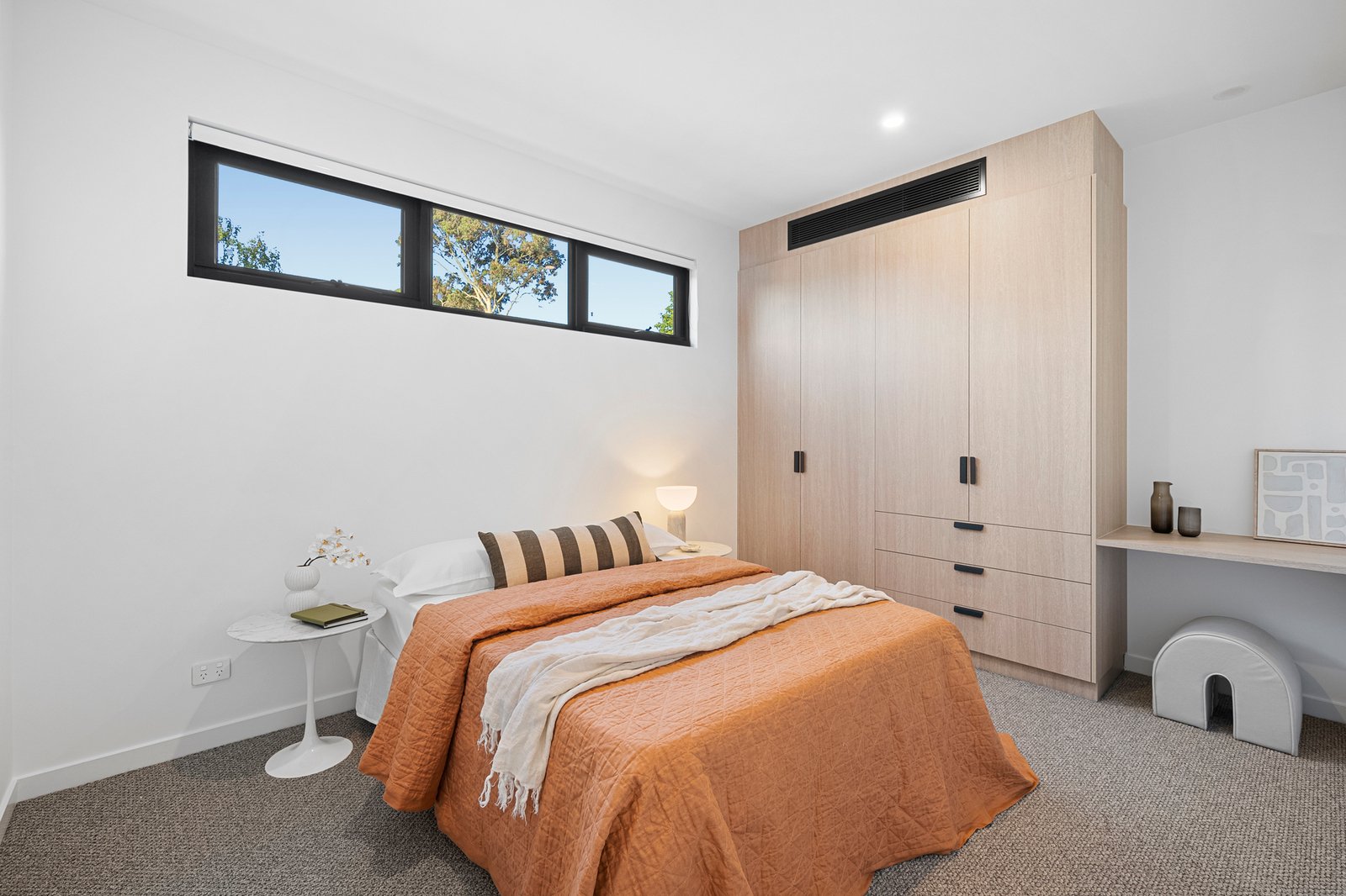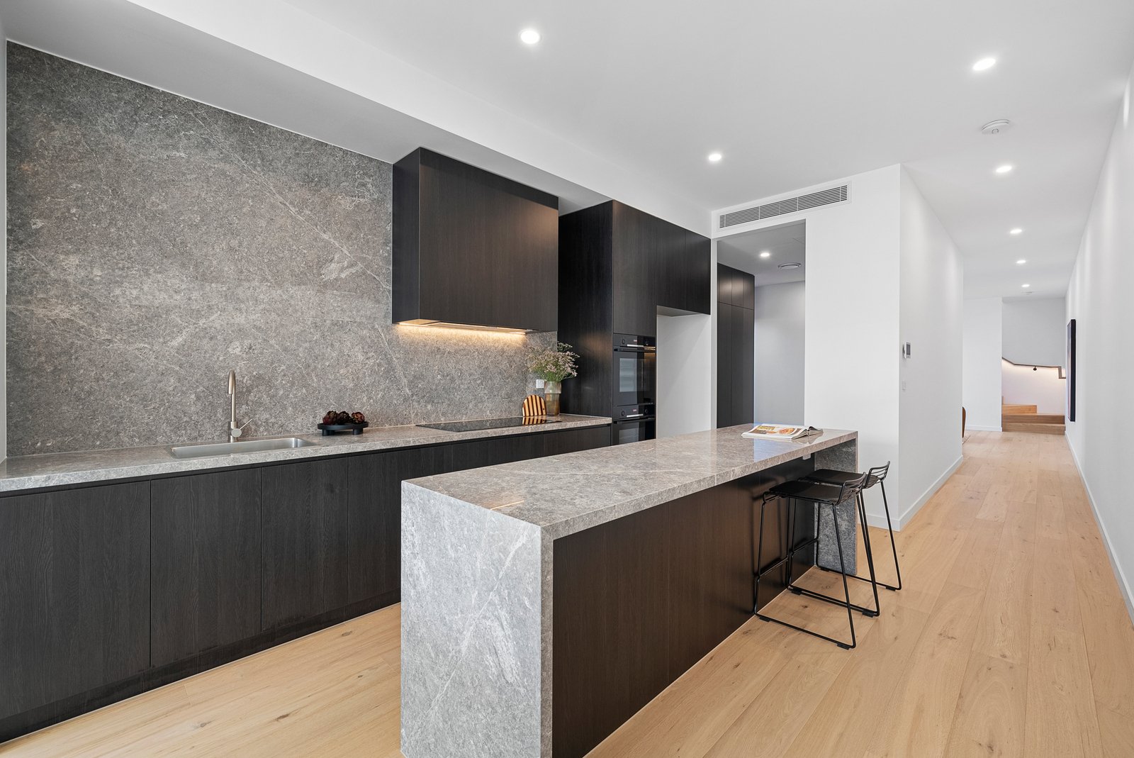 Specified to an uncompromising standard with a full complement of Bosch appliances (including dual ovens and integrated dishwasher) for the cutting-edge kitchen and full-height porcelain tiling for the 5 Star bathroom and ensuites. This bold new design stars luxury Tundra Grey Marble on custom cabinetry, engineered Oak flooring (downstairs) and premium pebbled carpets (upstairs).
