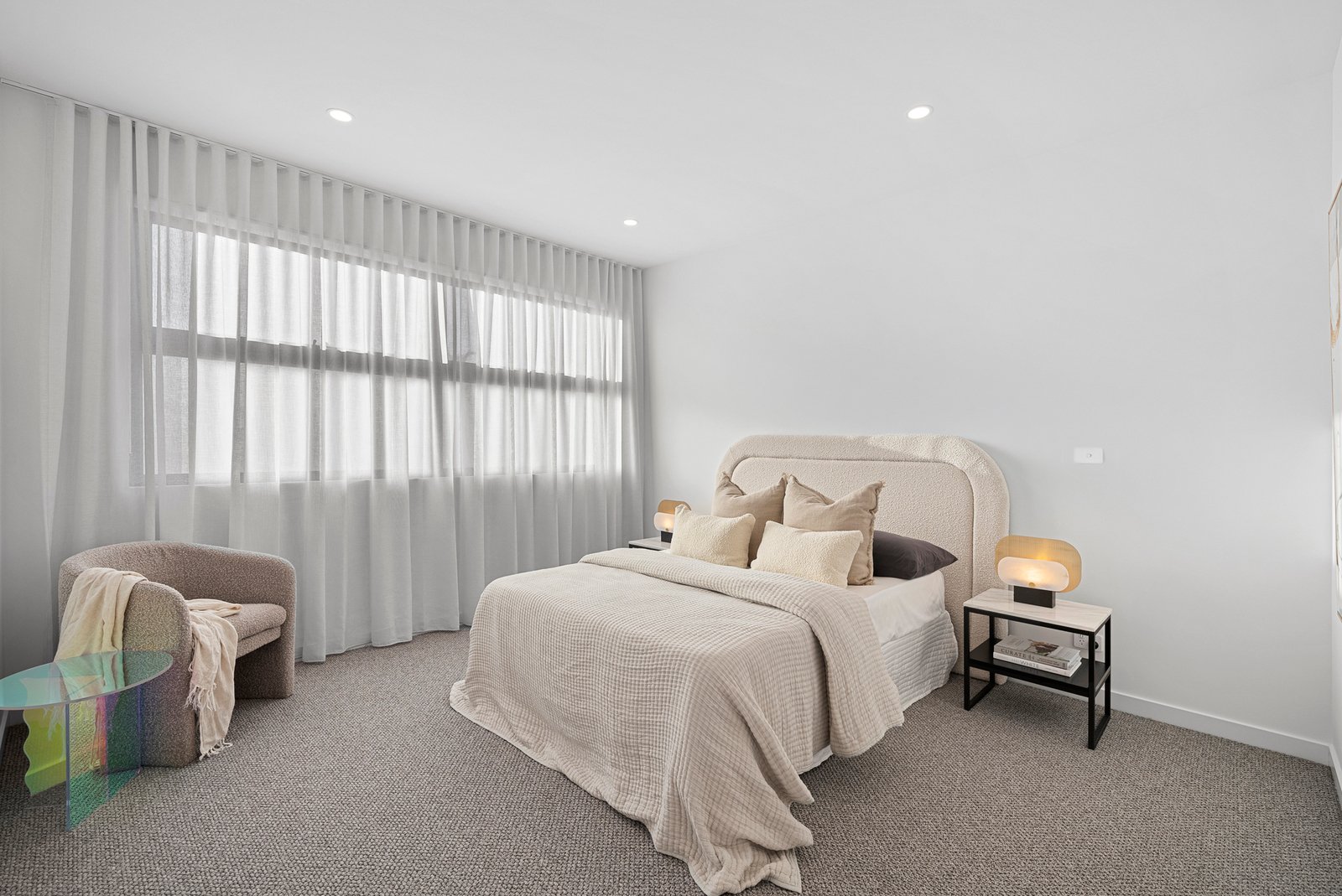 Combining expert design, exceptional quality and endless north sun, this brilliant brand-new home lights up coveted Caulfield North location. Illuminated by a deep northerly aspect, this high-gabled four bedroom plus study area, 3.5 bathroom, dual suite home shines with light-filled formal and family living, a dedicated first-floor bedroom level and tall glass-doors on two sides to wraparound garden space. Cleverly accommodating with a towering vaulted-ceilinged front bedroom, a second suite at the heart of the home and a private master-domain tucked quietly to the rear, this luxe design features 5-Star bathrooms featuring wall-faced WC’s and dual-head showers, and a fitted study area set beneath a brilliant skylight.