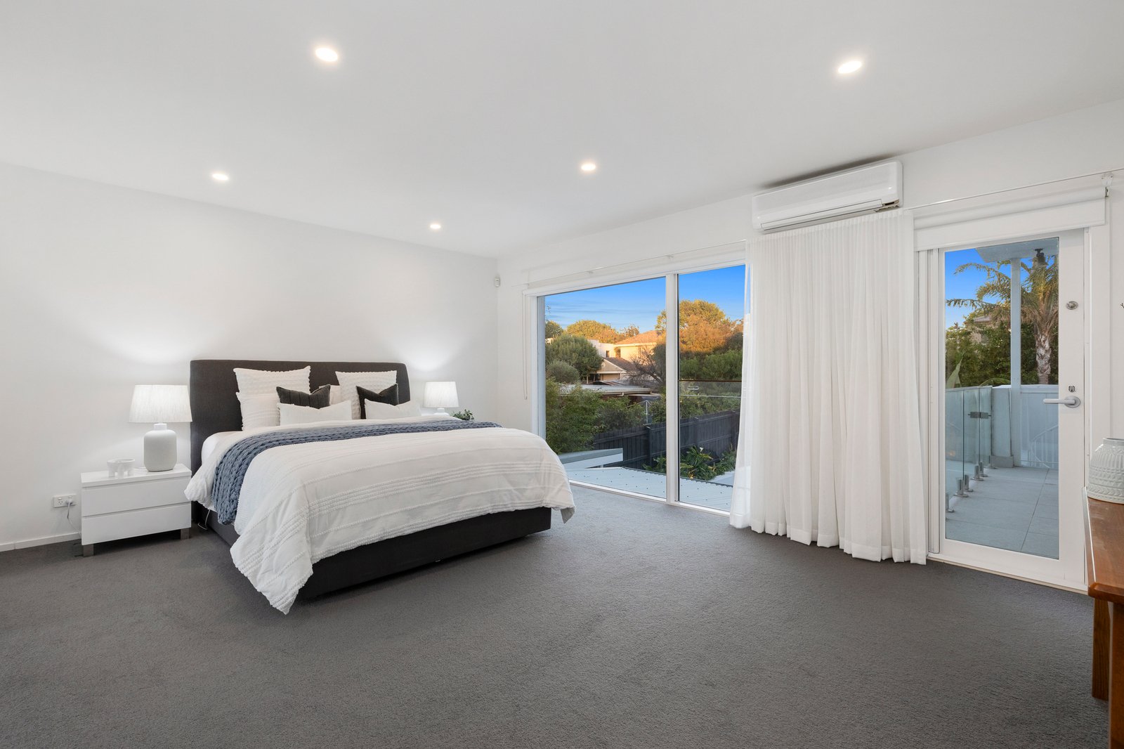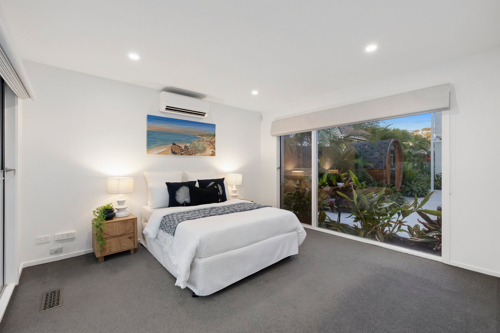 A ground floor bedroom is a sought-after inclusion as are the two stylishly presented powder rooms on this level. A laundry with storage and internal entry to the double auto garage are added drawcards together with ducted heating, multiple split systems and an intercom plus high-class plantation shutters & motorised blinds. Garden irrigation and ambient lighting and a low maintenance lawn conclude an exceptional family home.