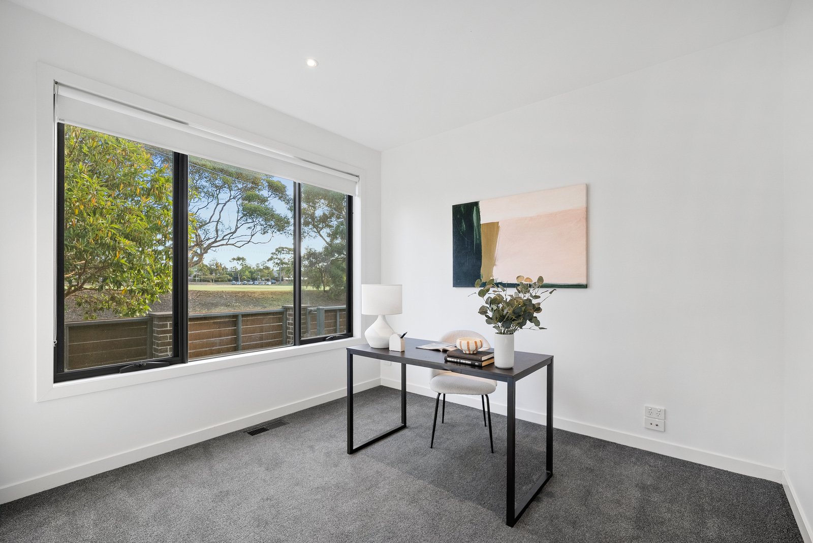 Upstairs, a bright retreat precedes three spacious bedrooms and a balcony capturing elevated park views. The main bedroom enjoys treed outlooks, a walk-in robe and a fully tiled twin-vanity ensuite, while two additional robed bedrooms are served by a central bathroom and separate WC.