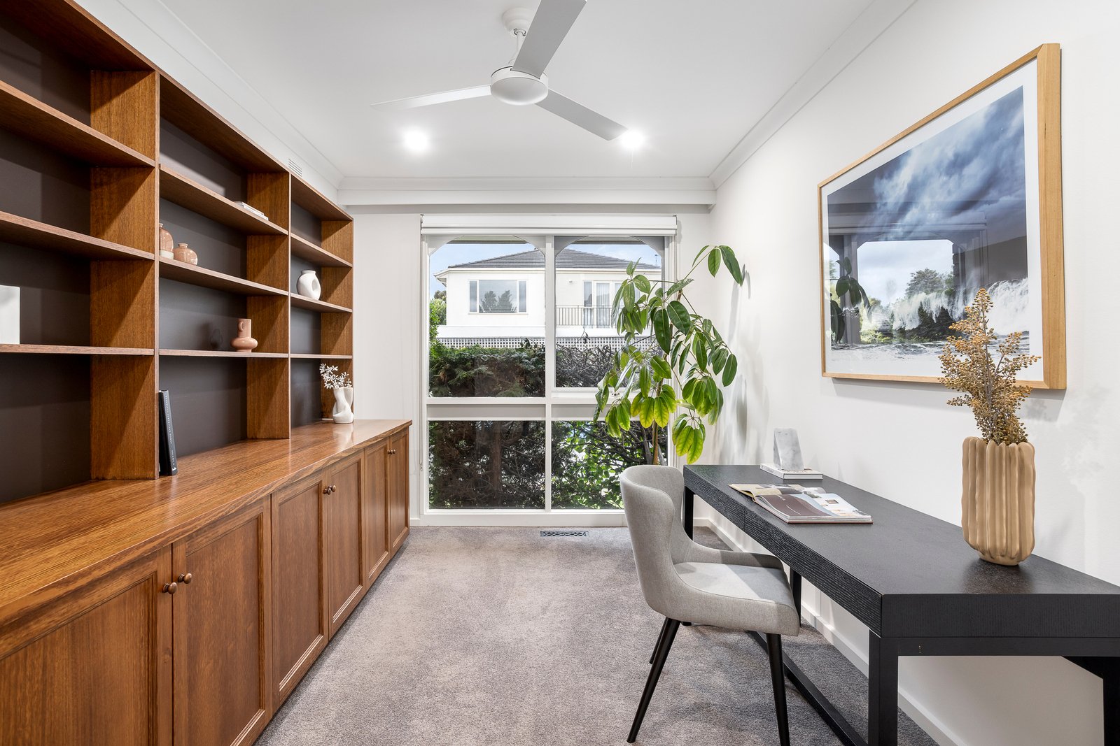 Thoughtfully zoned accommodation is highlighted by an exceptionally generous main bedroom suite featuring a gorgeous garden outlook, extensive built-in robes and a beautiful, designer-detailed ensuite. A second robed bedroom is complemented by a versatile study or third bedroom, depending on your needs.