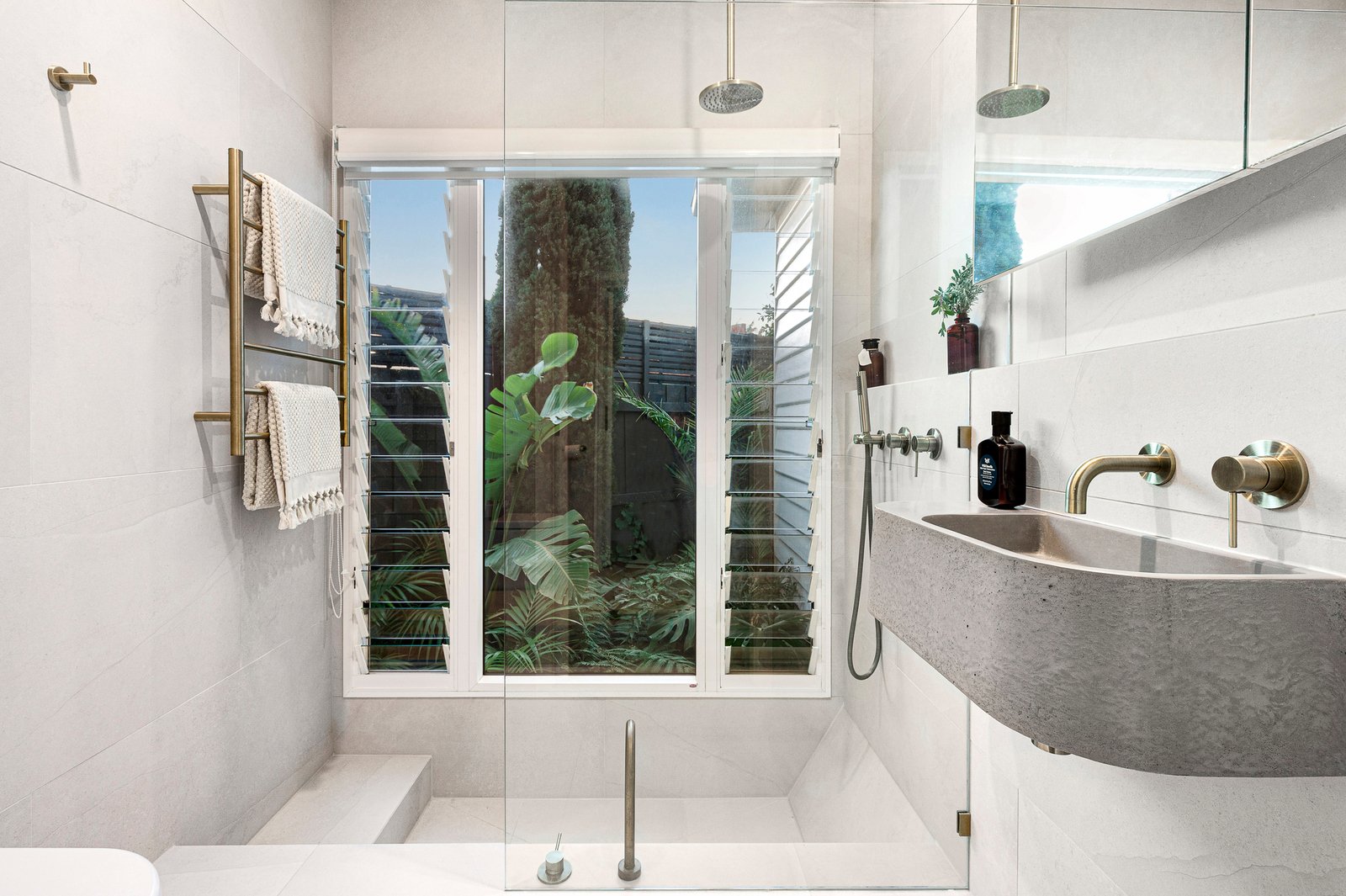 Meticulous attention to detail continues through the accommodation, where generous bedrooms are elevated by seamless integrated storage. One enjoys a sun-catching window seat, while the main bedroom boasts stylish bedframe cabinetry and a luxe ensuite. The primary bathroom delivers day-spa indulgence, with a window wall framing a lush internal garden, complemented by a sunken bathtub, rain shower and floating vanity.