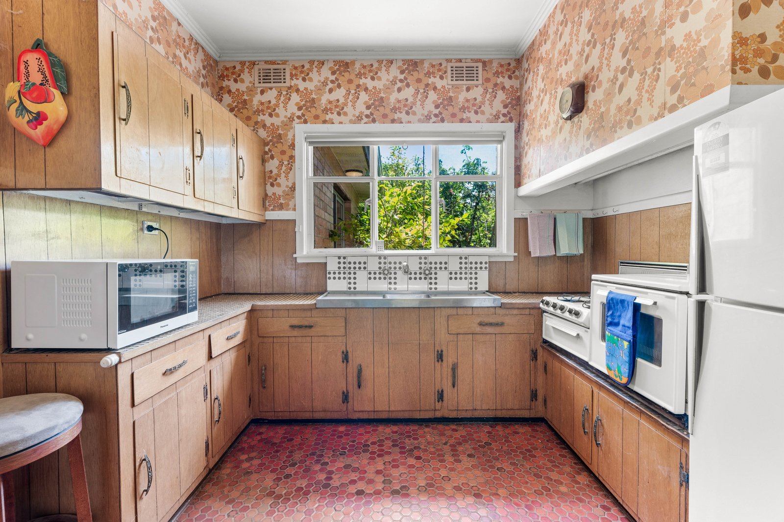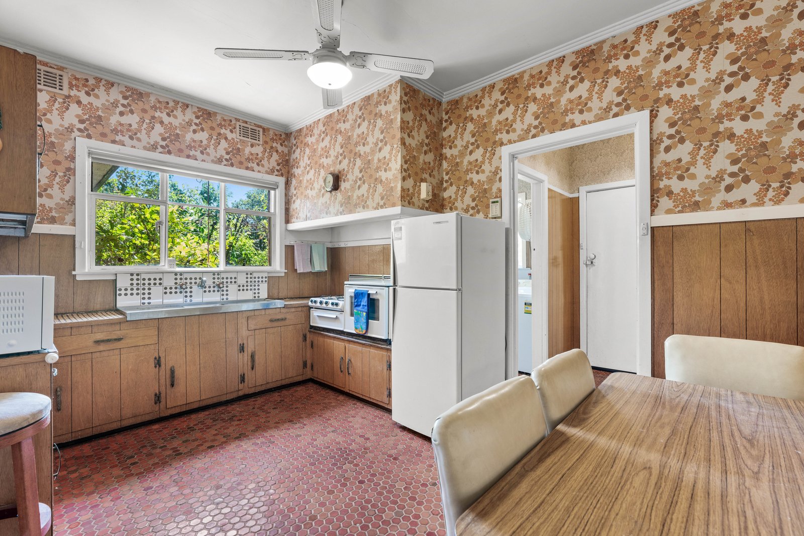 See the solid family value in this three bedroom brick beauty and update to maximise large living-dining with adjacent north-westerly sunroom and a remarkable retro kitchen with room to eat-in. Well-zoned with bedrooms set in a quiet wing around a pristine vintage bathroom, this immaculate one-owner home is a superior example of its time – characterised by well-proportioned spaces and late-period graces.