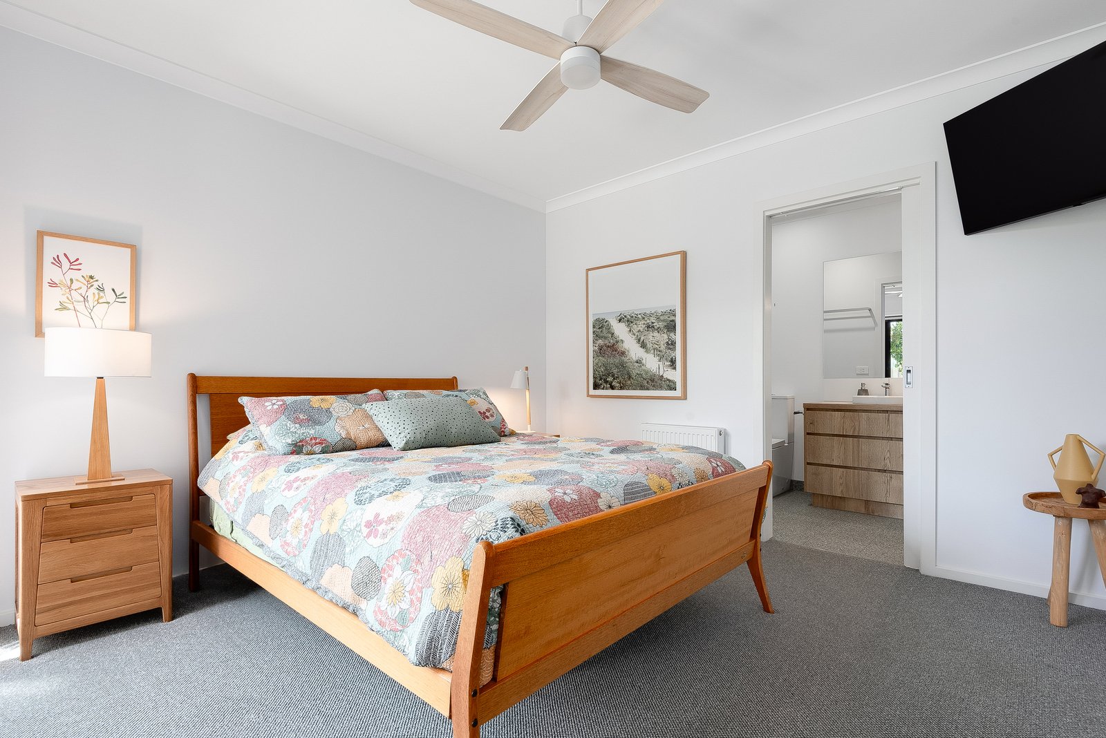 Designed for comfort and functionality, additional features include hydronic heating throughout, split system heating and cooling, ceiling fans, full insulation, motorised sun blinds, a well-appointed laundry with ample workspace, and generous linen storage.