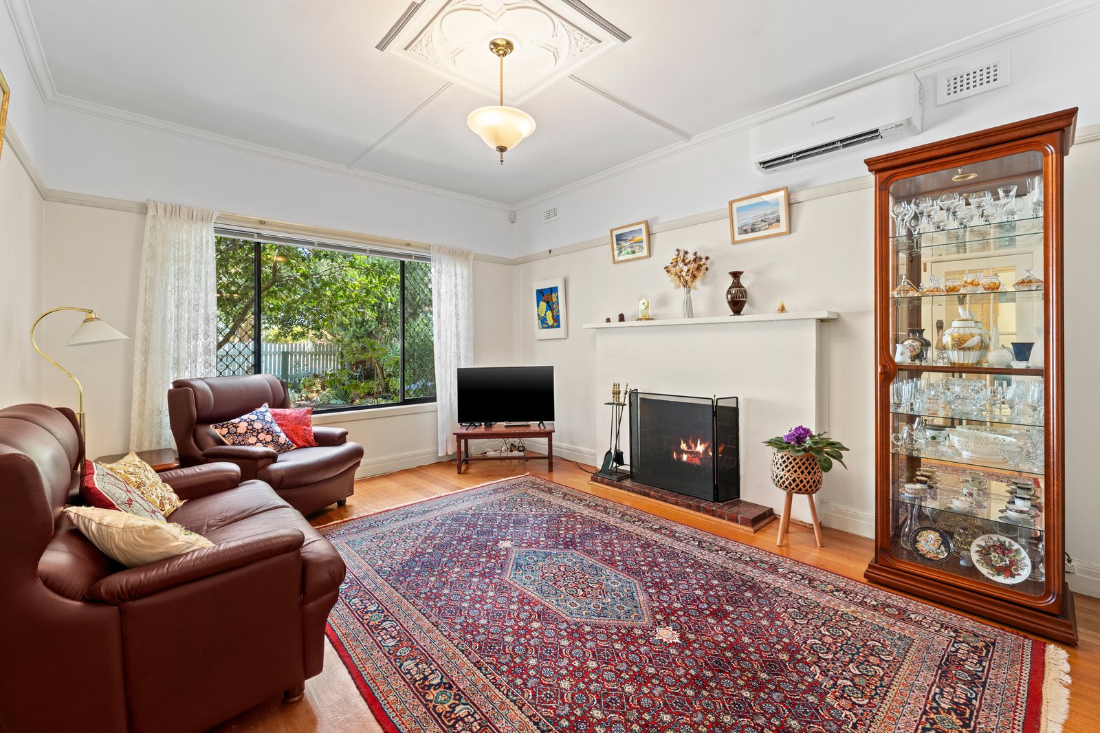 Sun-filled interiors reveal enduring elegance, with a timber-floored entrance hall flowing to an inviting lounge room enjoying leafy garden outlooks, an open fireplace and generous proportions. An adjoining dining room mirrors the scale and grace, allowing the rooms to connect for larger gatherings or remain separate for more intimate occasions.