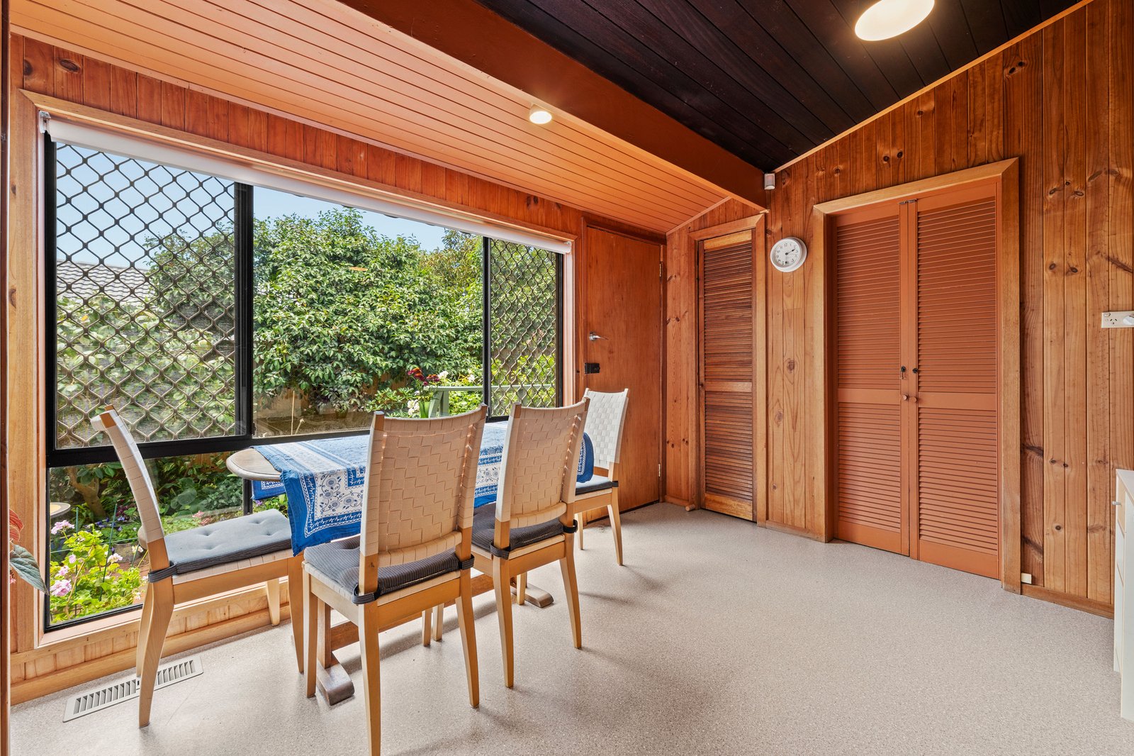 The bright kitchen with Westinghouse cooker and Dishlex dishwasher overlooks a north-facing courtyard framed by established greenery, creating a peaceful setting for everyday living and entertaining. Beyond, a versatile sunroom or study connects seamlessly to the north-facing rear, extending the sense of calm outdoors.