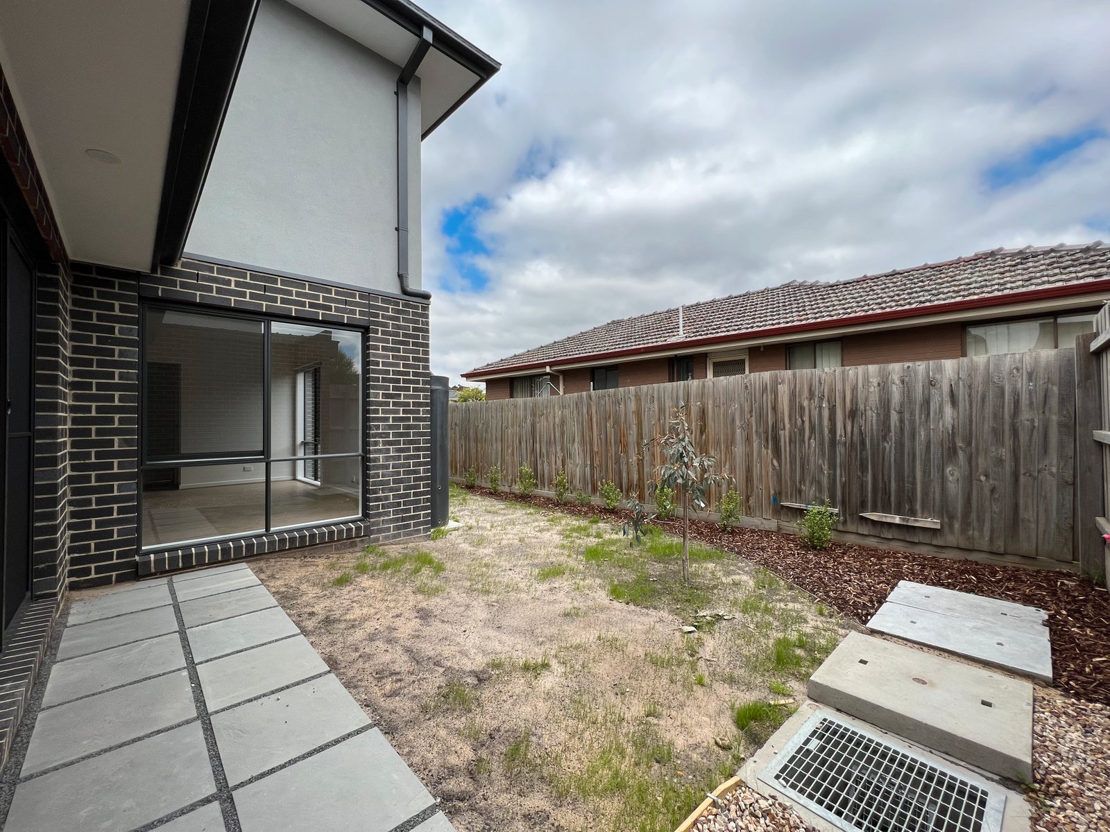 - Private rear courtyard with storage shed