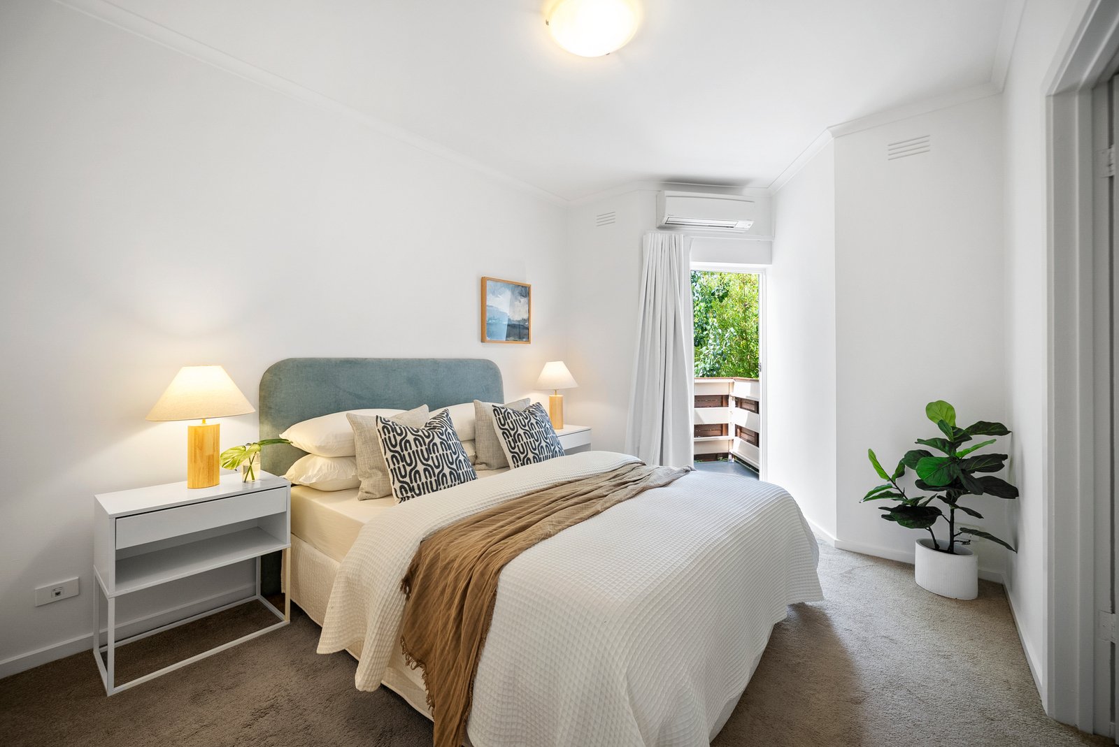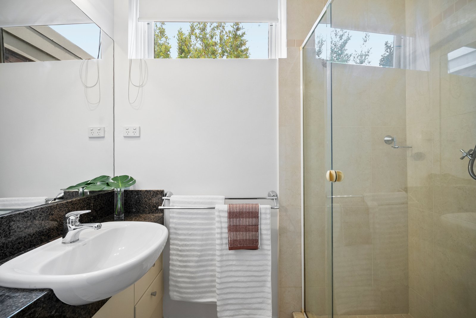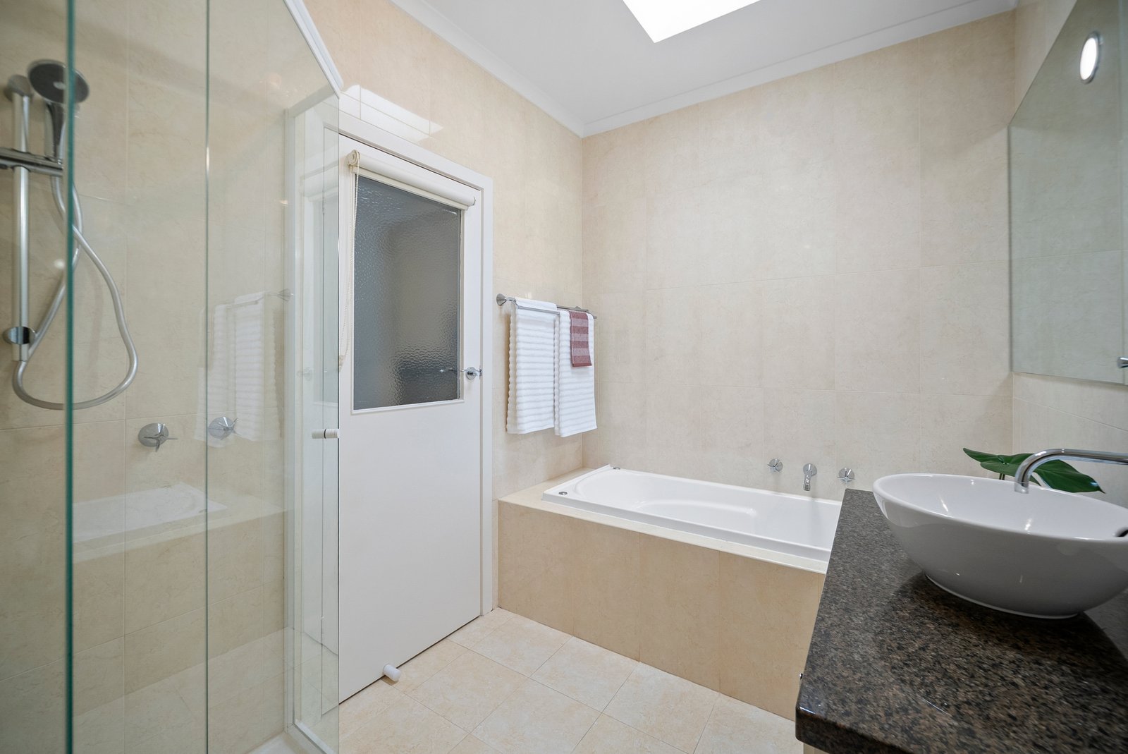 A skylit staircase introduces three bedrooms, led by a serene main suite featuring a walk-through robe, bright ensuite and a private balcony nestled among the treetops. Two further bedrooms are complemented by a fully tiled family bathroom with spa bath.