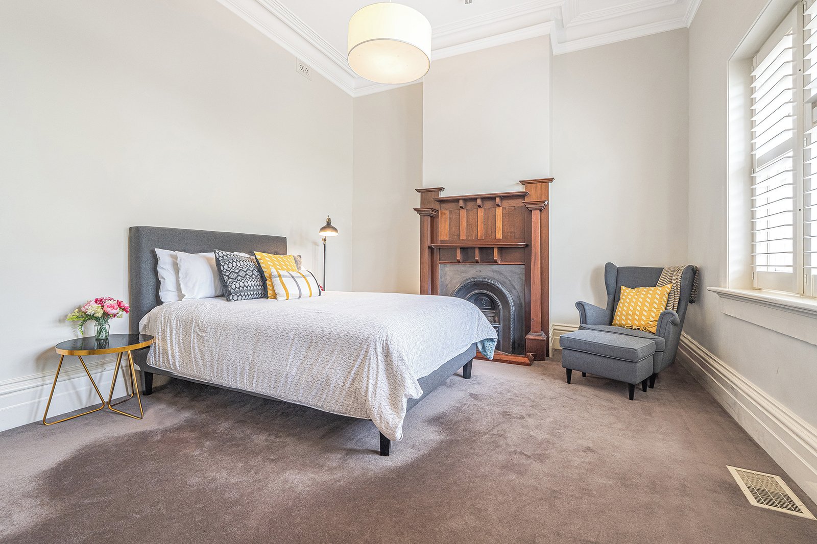 Showcasing the original features and character of the home from the classic street scape, appealing traditional facade and the stairs that lead up to a lovely private porch and into the home via the stunning double doors. The interior is highlighted by warm neutral tones and generous living spaces offering a flexible floorplan for young families, teenage families and those wanting to work from home. Boasting high ceilings, ornate cornices, timber fireplaces and floorboards the property offers multiple areas of family living.