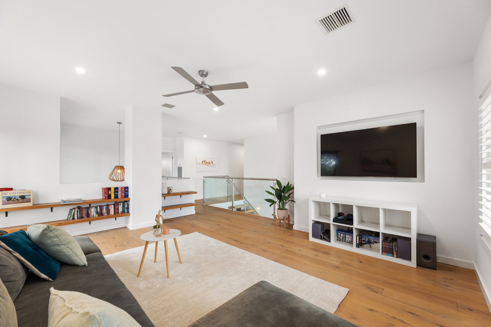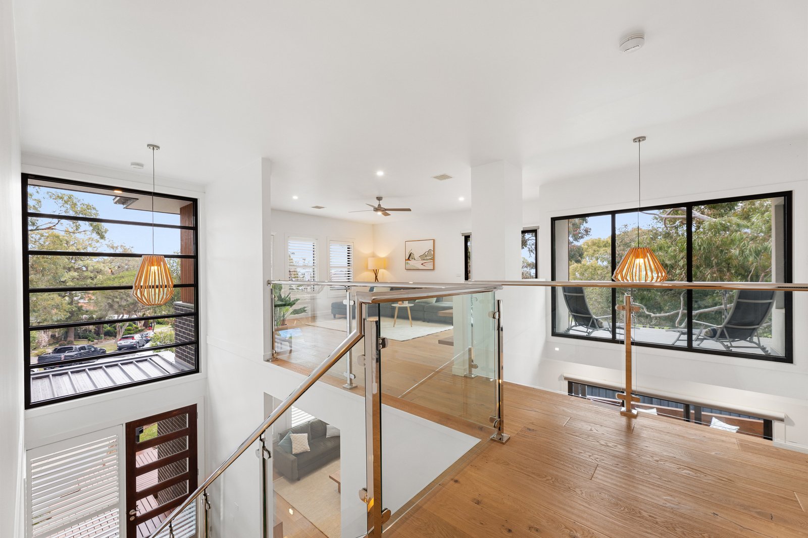Bedrooms are cleverly zoned in private wings, with 5 bedrooms to accommodate the growing family, 3 bathrooms, 2 dedicated studies with in-built desks and a spacious gym/ theatre room. Up the floating staircase, a huge rumpus and balcony present the perfect place to relax and entertain, with a mezzanine as the perfect viewing platform for the 2 spectacular voids.