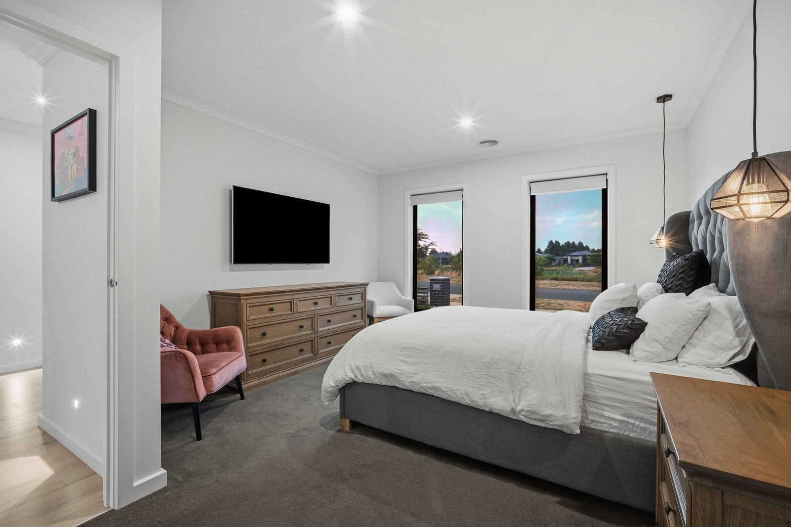 The master suite is a true retreat, featuring an ensuite with stone benchtops, while the remaining bedrooms all include built in robes and are supported by a beautifully appointed central bathroom with a freestanding bath, oversized shower and stone vanity.