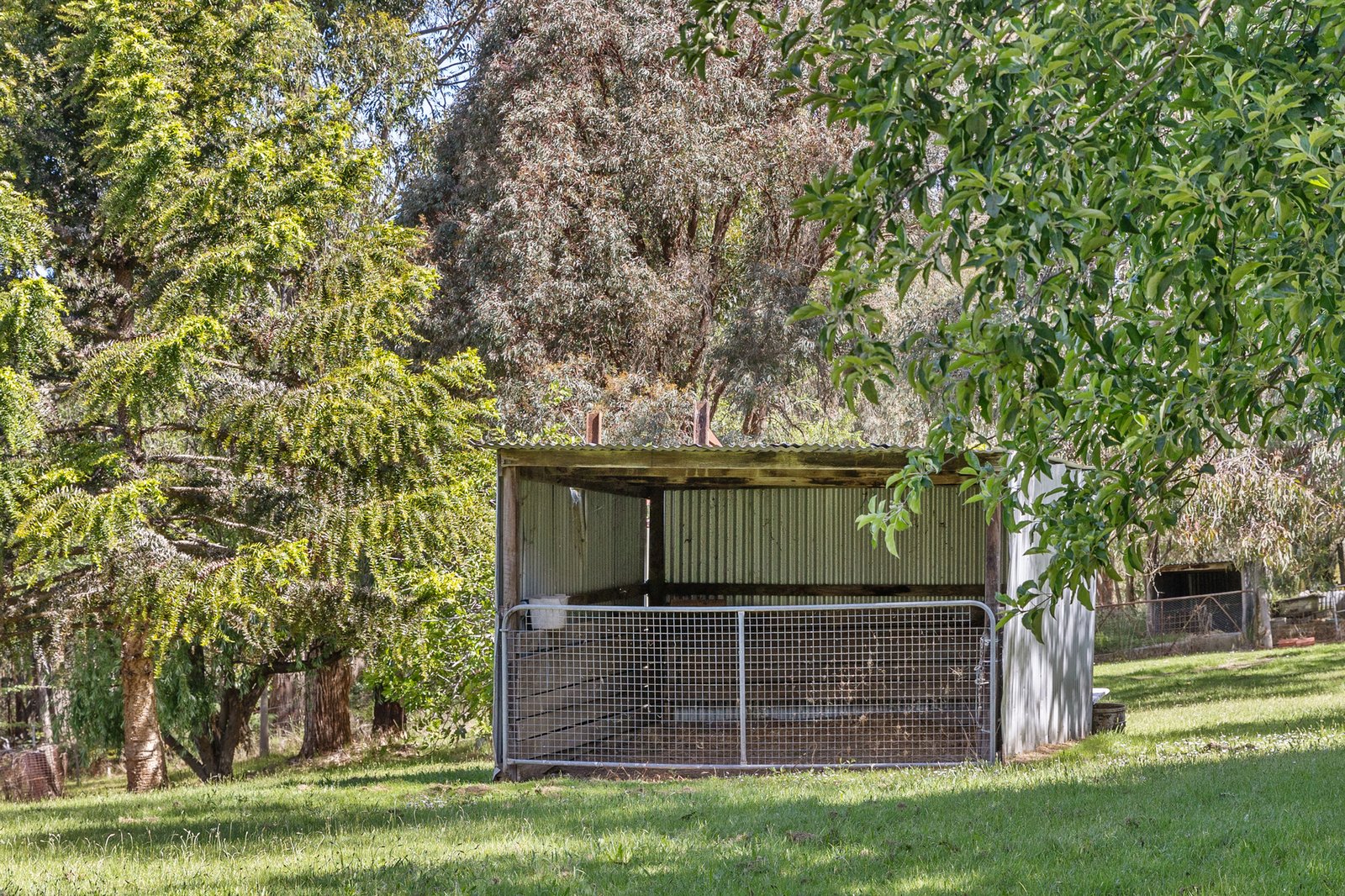Beyond the home, the property’s idyllic landscape unfolds with exceptional versatility. Fruit and citrus trees dot the picturesque grounds, while three paddocks, and a dam with a water pump, cater to hobby farming, equestrian pursuits, or self-sufficient living. A four-bay machinery shed with power and a concrete slab, paired with two carports, ensures practical functionality for agricultural or storage needs.