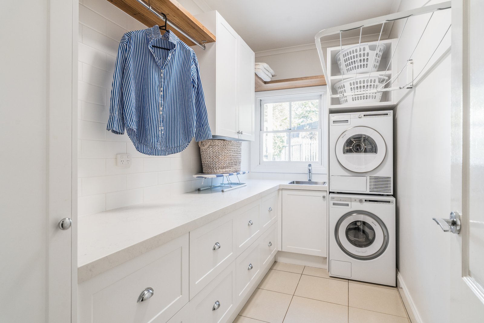 Equipped for comfort and functionality, additional features include split system heating and cooling understairs storage, and a well-appointed laundry with generous workspace and storage.