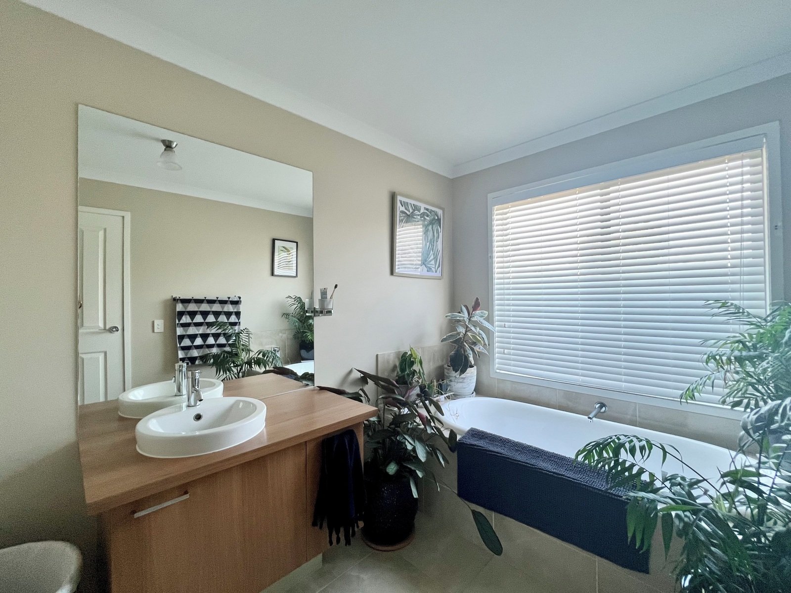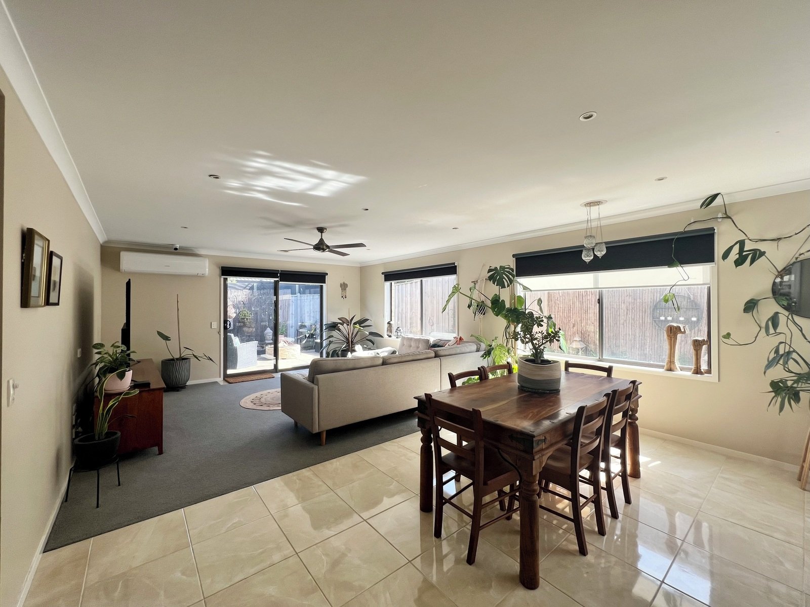 - Open plan living, dining and kitchen with central heating, split system heating and cooling and ceiling fan