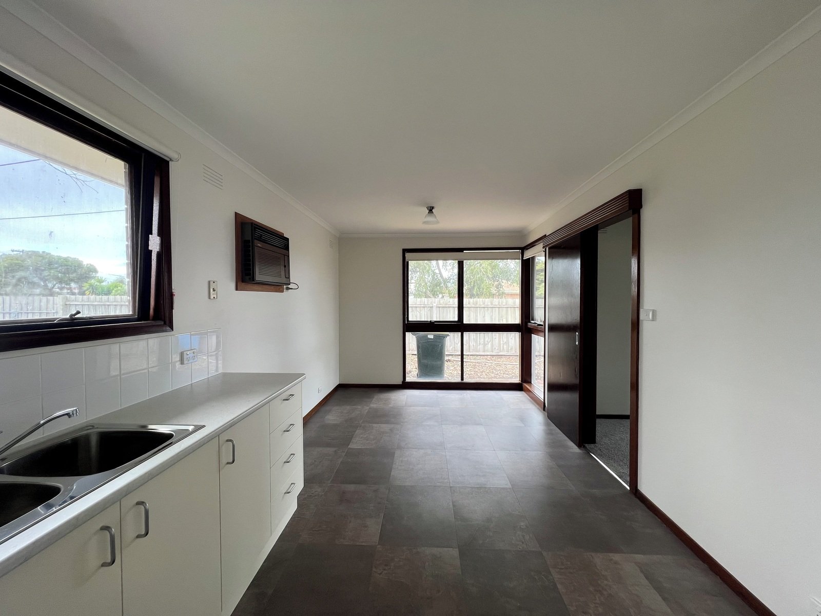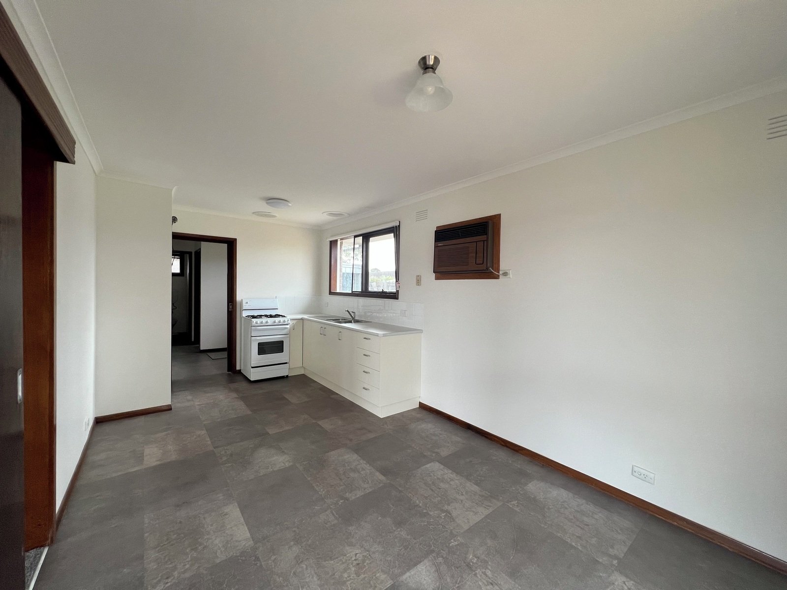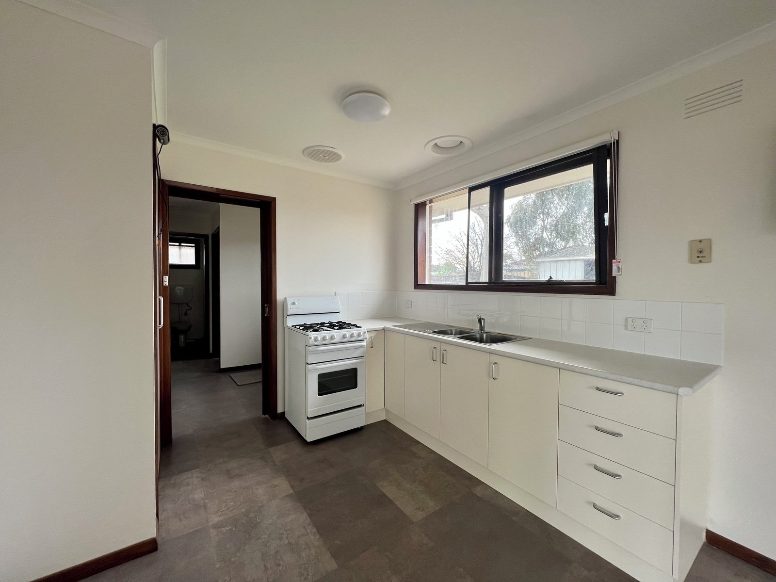 Three good sized bedrooms, two with built-in robes and one with a stand up robe, open plan kitchen and dining space which overlooks the backyard, large living with split system heating and cooling. Kitchen with gas upright stove, and ample cupboard storage.