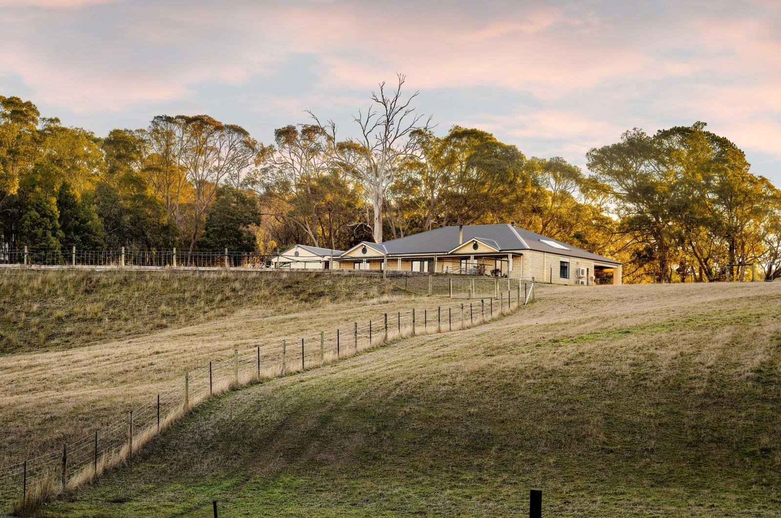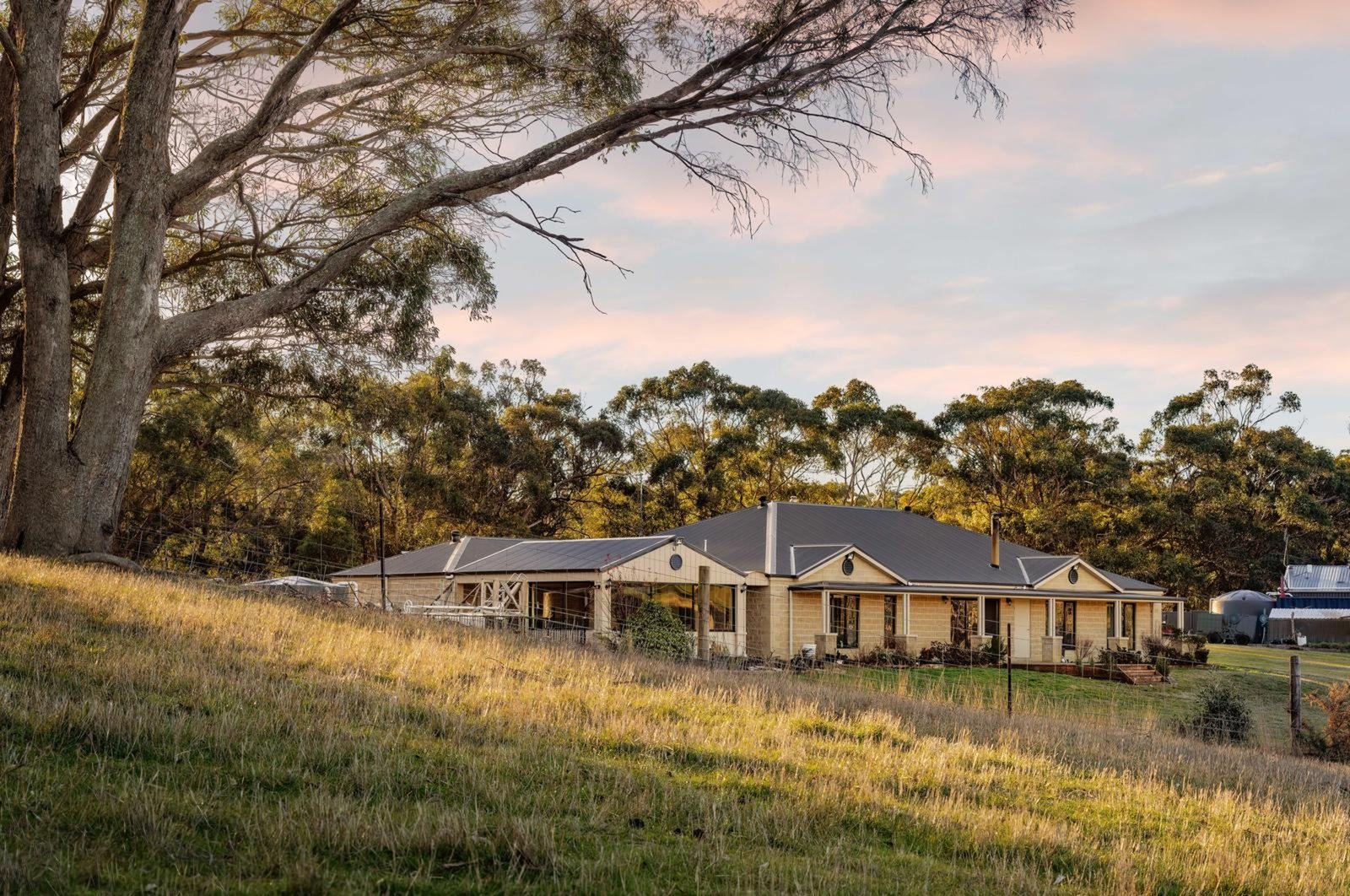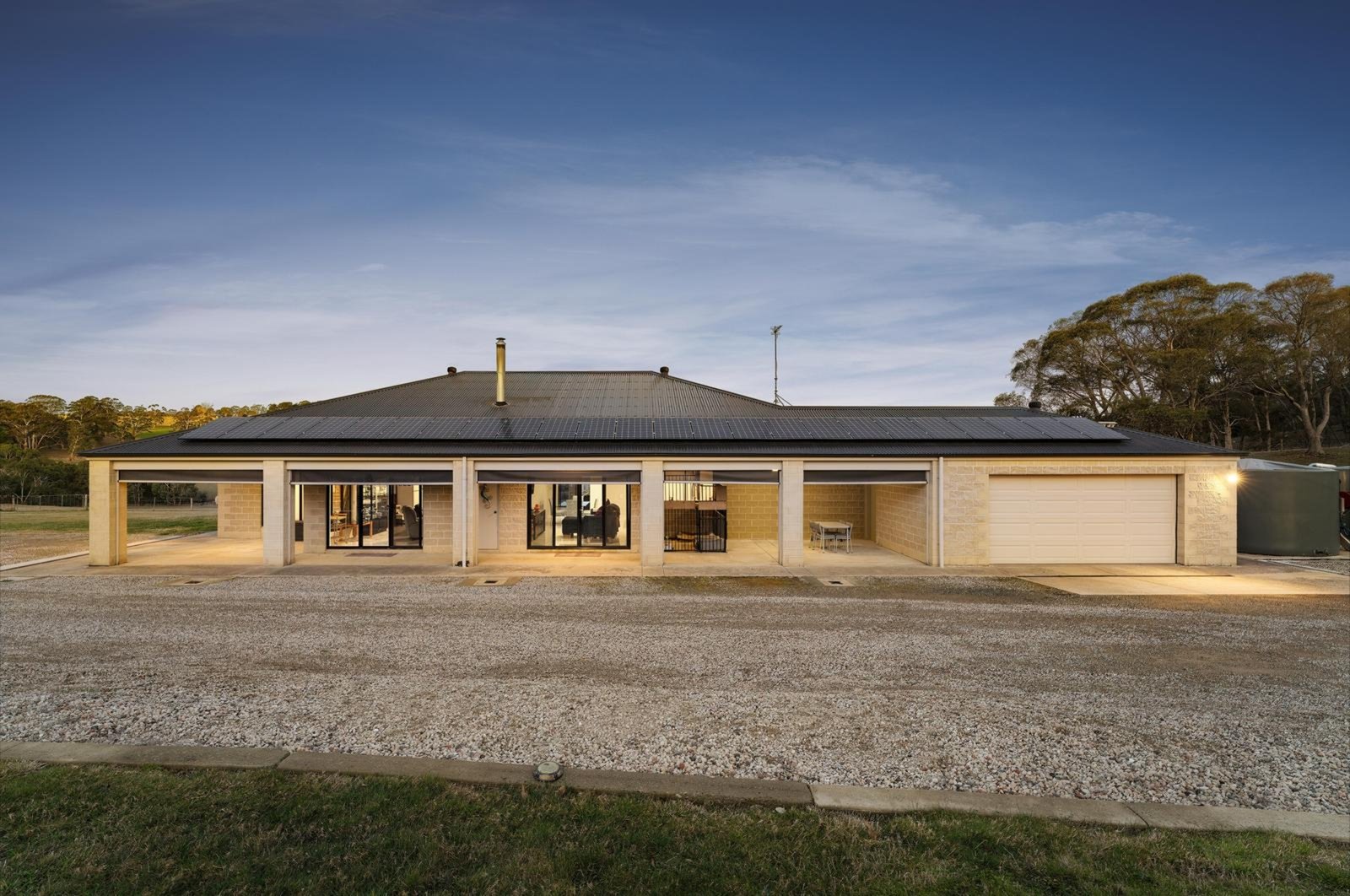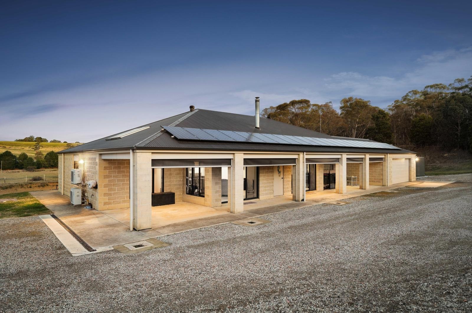 The 6-star energy-rated home blends country warmth with modern efficiency, featuring 9ft ceilings and a versatile layout of four bedrooms and two living zones. With its clever footprint, the home offers genuine dual-living potential, including a dedicated rumpus with a bar for effortless entertaining. Powered by a 24-panel solar system with battery storage and kept comfortable via ducted wood heating, ceiling fans and split systems. There are two outside entertaining areas capturing picturesque views of the surrounds, the residence offers a lifestyle of total independence.