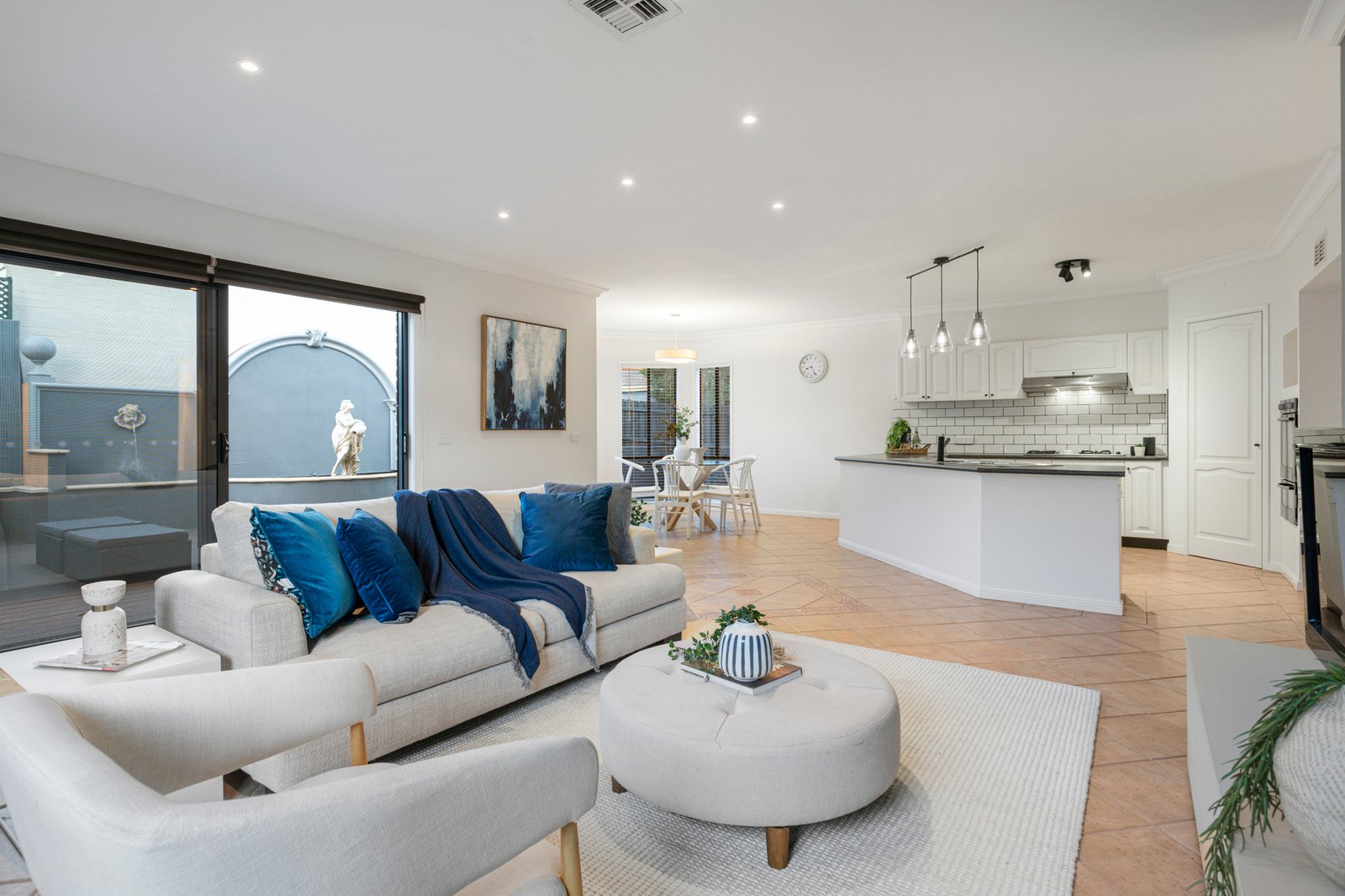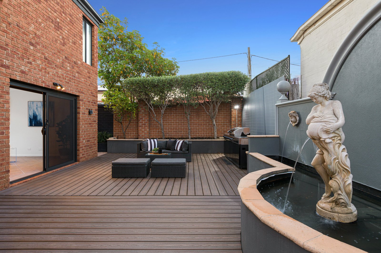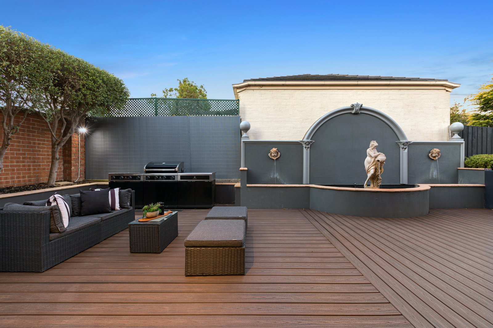 Extremely private, the rear outdoor entertaining area with composite decking and serene water fountain is the ideal spot to gather with friends, while garden irrigation and outdoor storage are both offered. There is also the convenience of a double garage with rear roller door access and ample parking for trailers, boats or caravans.