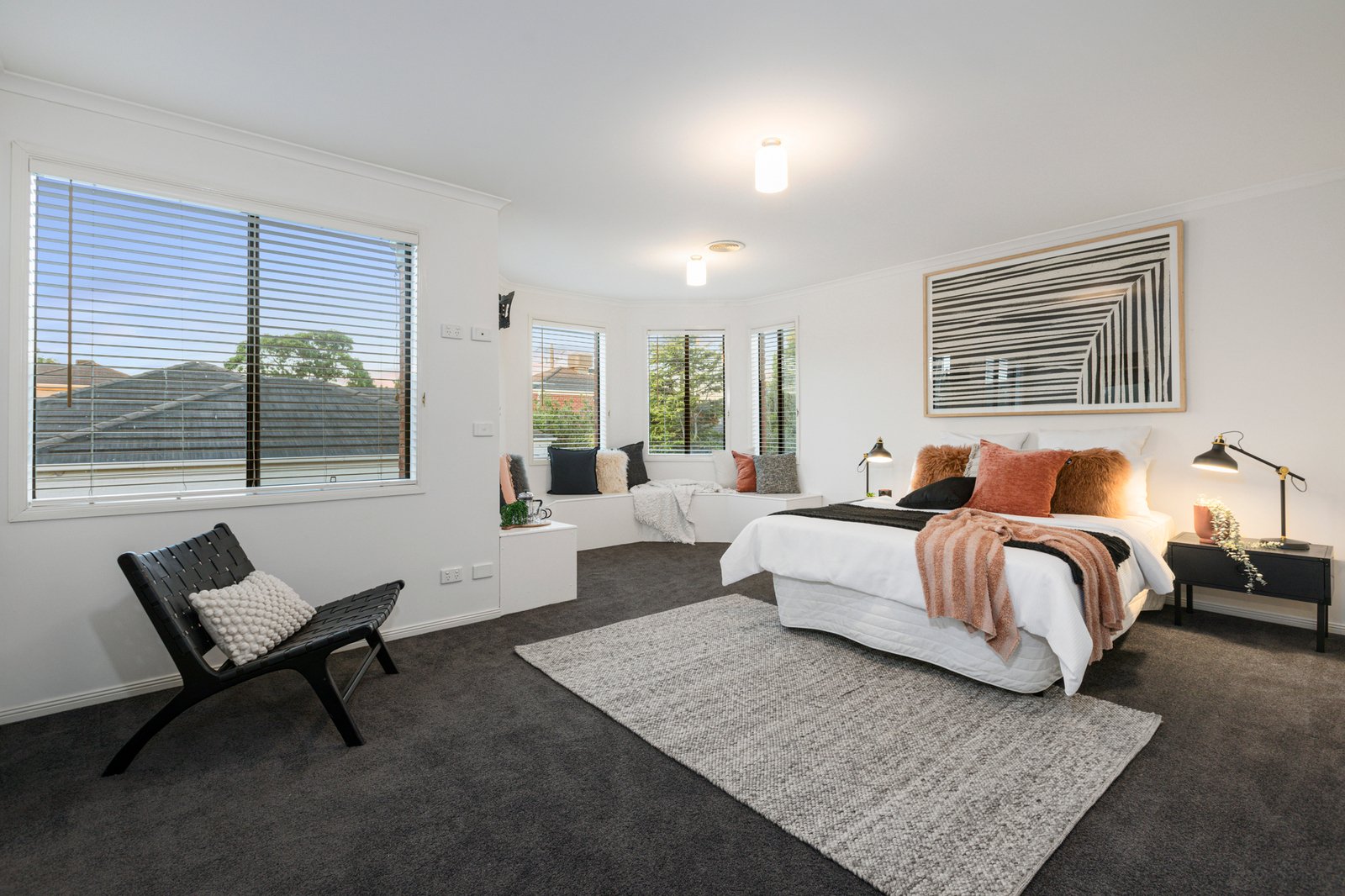 All four bedrooms are positioned upstairs. The primary suite is of exceptional proportions and features a bay-window sitting area, a large walk-in robe and luxe spa ensuite. The remaining bedrooms all boast fitted storage and share a bright family bathroom with separate WC.