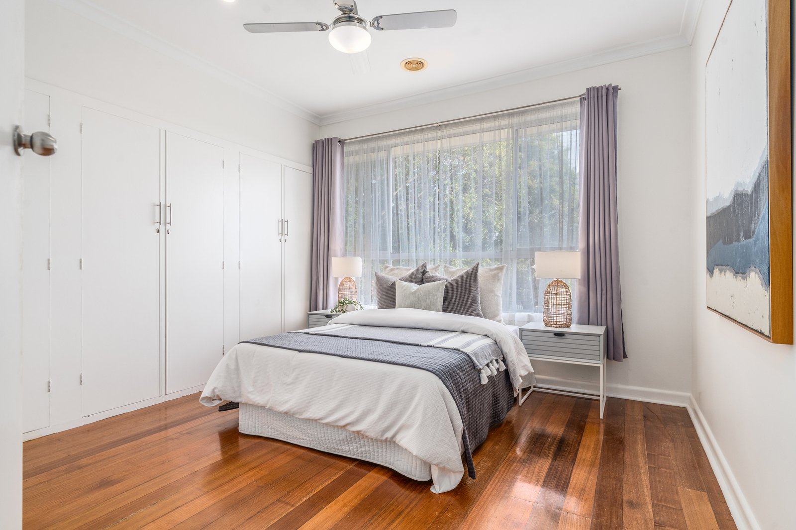 Established gardens and a classic rendered façade greet you on arrival. Inside, a wide entry hall introduces freshly painted interiors and beautiful polished timber floors. Double doors lead into an inviting living area featuring an original mantel as its centrepiece, with ducted heating, split system heating and cooling, and a ceiling fan ensuring year-round comfort. The adjoining dining area flows through to a stylish kitchen with a skylight for warm natural light, completing a well-designed layout for everyday living and easy entertaining. A north facing sunroom at the rear provides the perfect space to retreat or work from home, with connecting access to the alfresco.