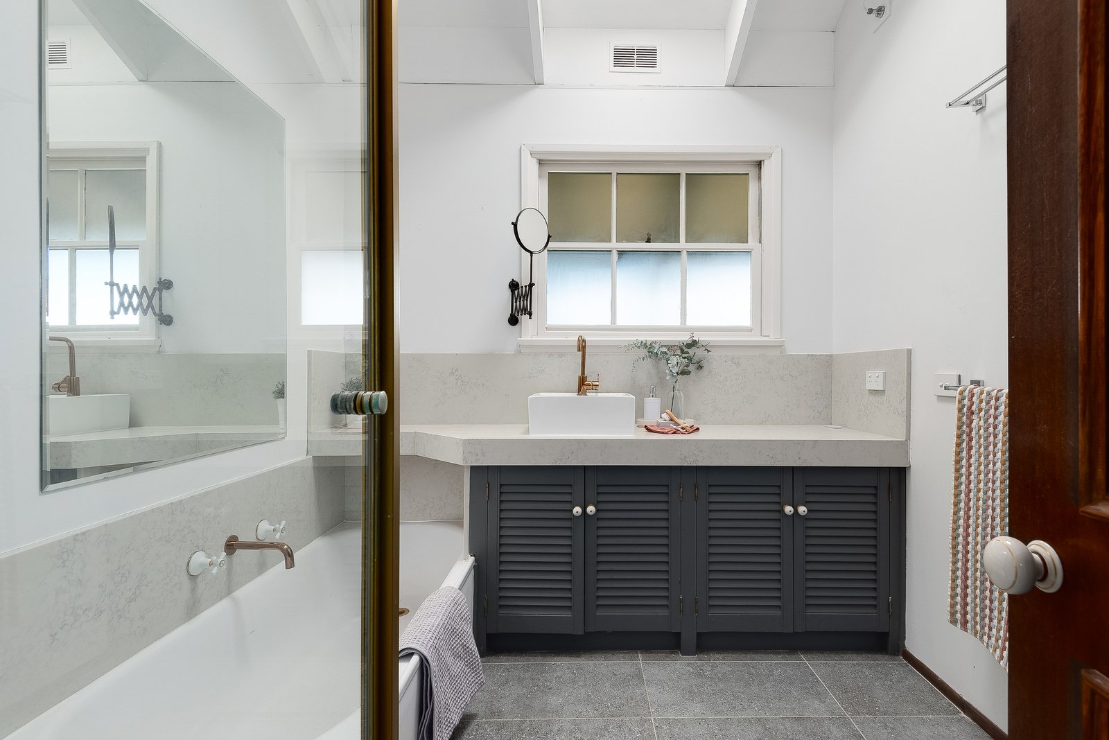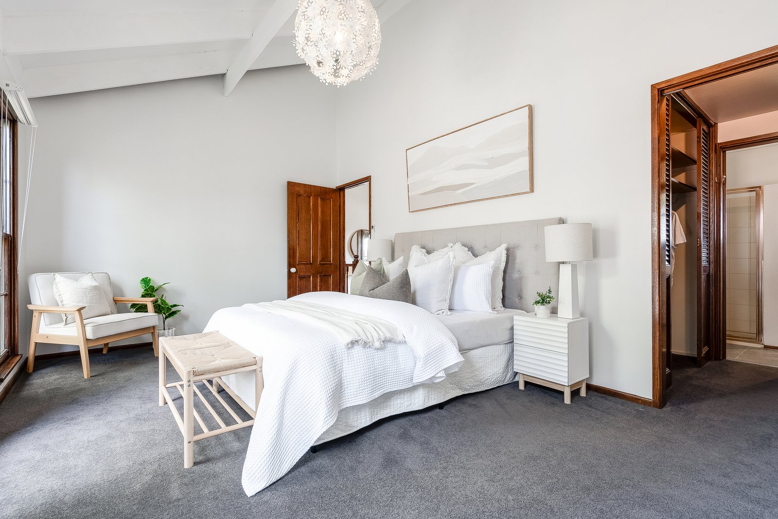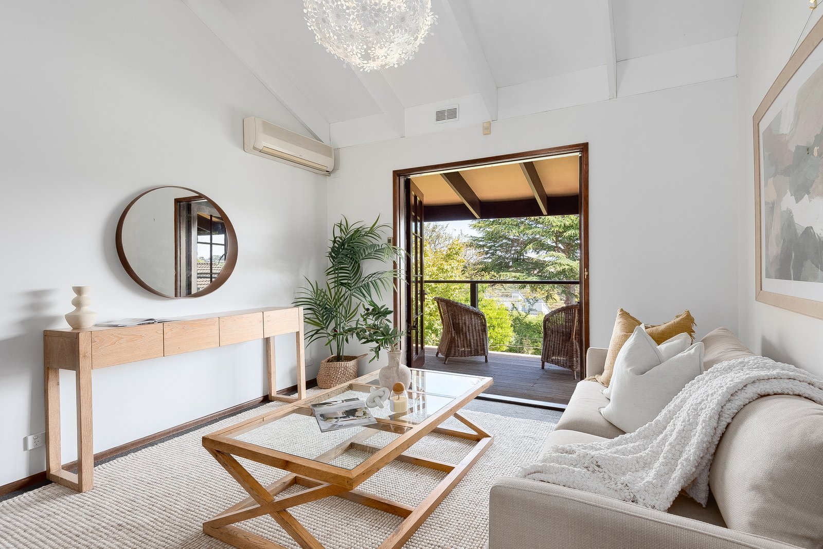 Upstairs an additional living area provides a quiet space to retreat, featuring vaulted ceilings, exposed beams, beautiful pendant lighting and direct access to the rear balcony, the ideal place to relax take in the elevated views across Queens Park to Fyansford.
