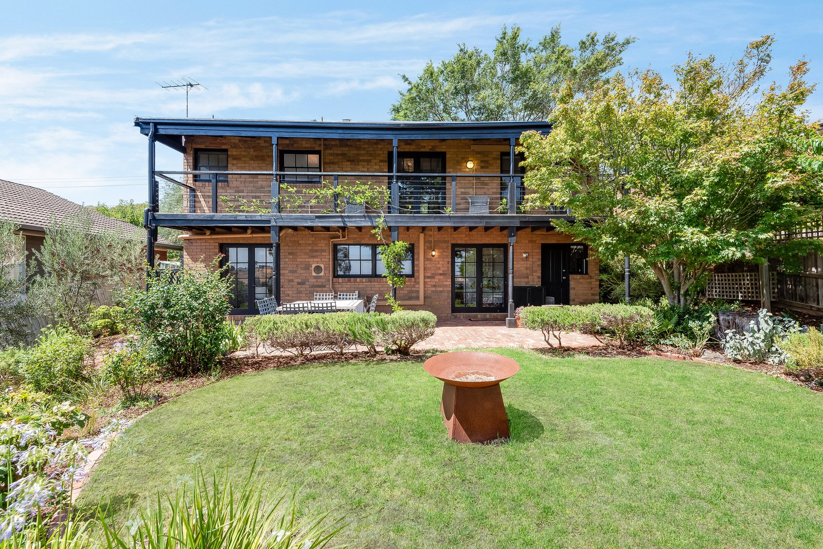 Outside, the expansive north facing backyard offers ample space to play, relax, or wine and dine outdoors. The rear verandah overlooks a paved entertaining area, the perfect spot to enjoy the sun and picturesque scenery. The surrounding gardens provide a captivating space for the kids to explore, with a lush lawn area, firepit, and established trees creating a shady and tranquil environment.