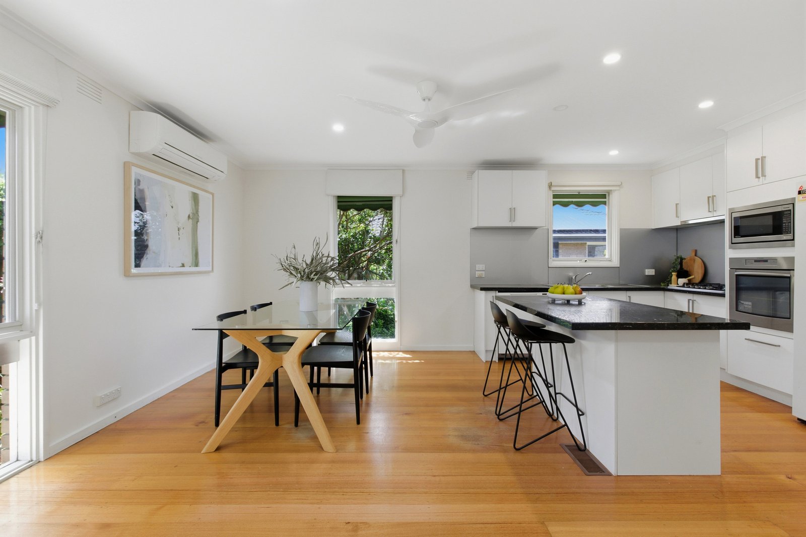 Freshly painted and perfectly presented to move in and relax, this elevated home is sized up all around with a quiet master-suite and formal lounge to the front, the second bedroom and adjacent bathroom with the casual living zone opening onto the sun-filled north-facing rear, and great garden space all around. Impeccably styled with a glossy granite kitchen centre-stage and polished hardwood floors throughout, with extensive solar panels this centrally heated and inverter-air-conditioned home features floor-to-ceiling tiles to both bathrooms, a big walk-in robe for the master, and a generous skylit family laundry for easy living.