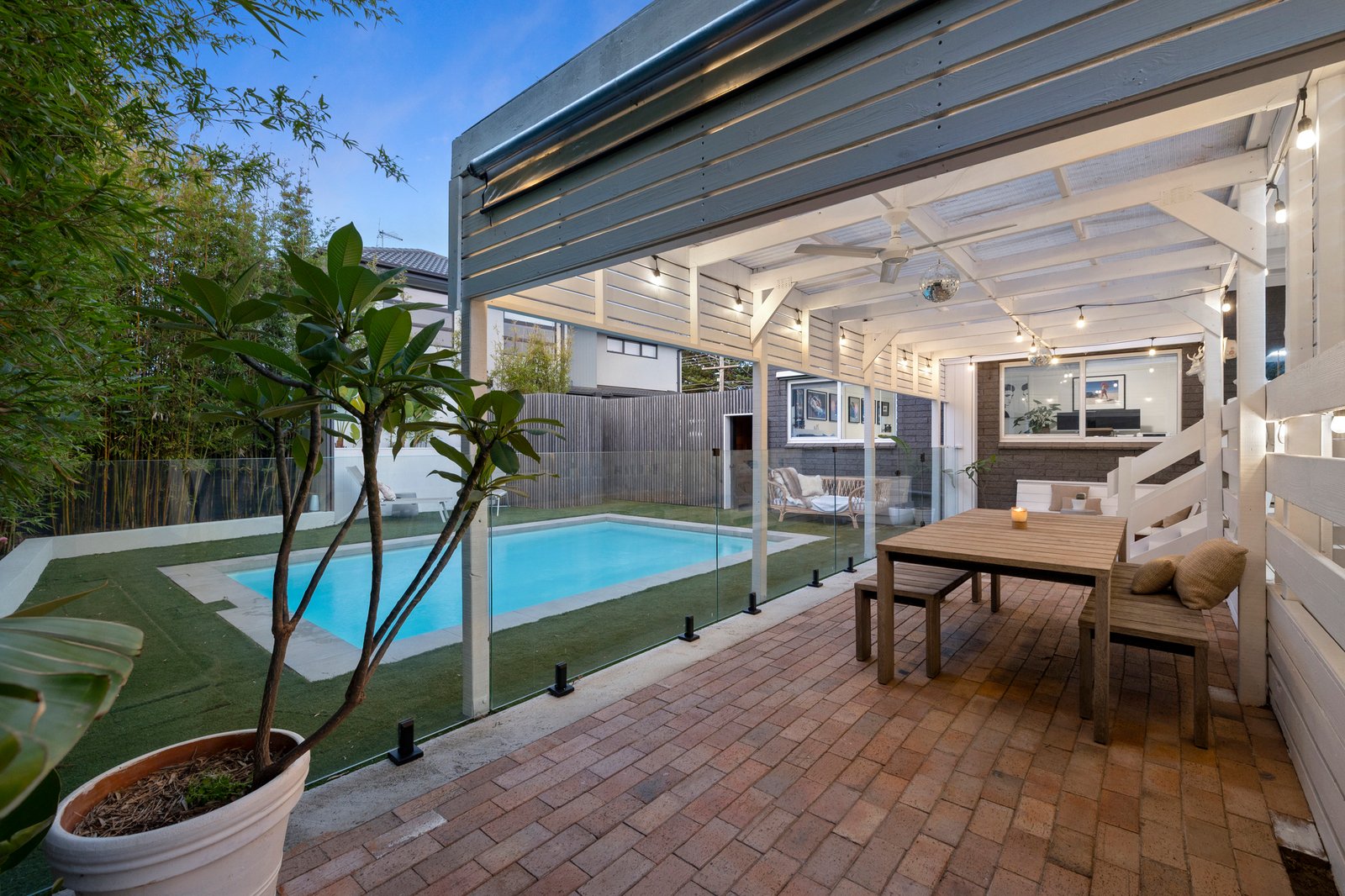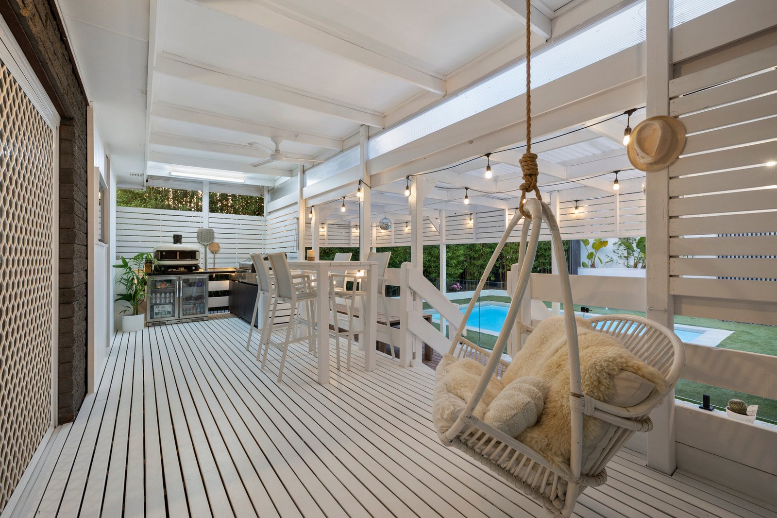 The rejuvenated kitchen boasts a brand-new oven & filtered water while outside an elevated BBQ deck steps down to a sheltered alfresco area which provides the ultimate space to unwind beside the twinkling mineral salt heated pool shaded & private thanks to towering bamboo.