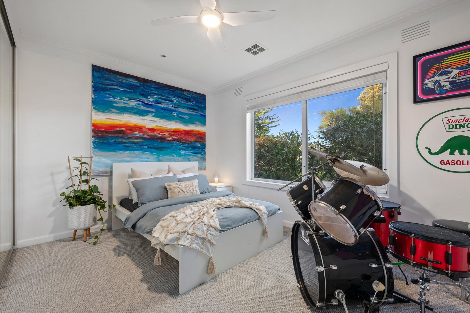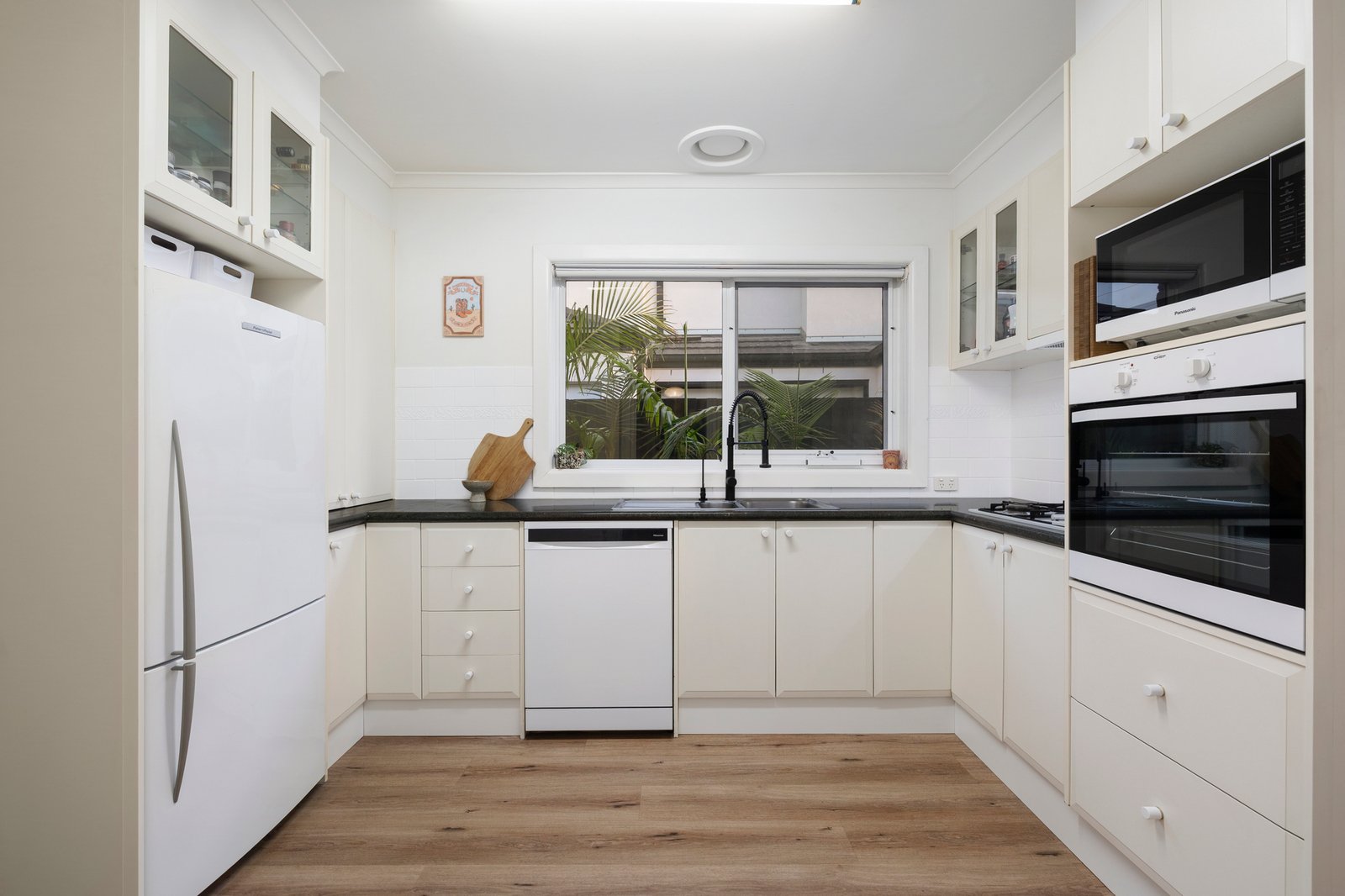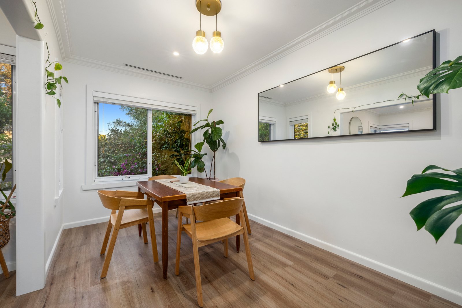 Refreshed and fabulous in every way, the double-glazed layout is flushed with natural light, flowing to the cosy lounge with a gas log fireplace and the dining zone just beyond. Both rooms enjoy outlooks of the tranquil front garden screened behind a tall privacy fence and bathed in morning sunshine.