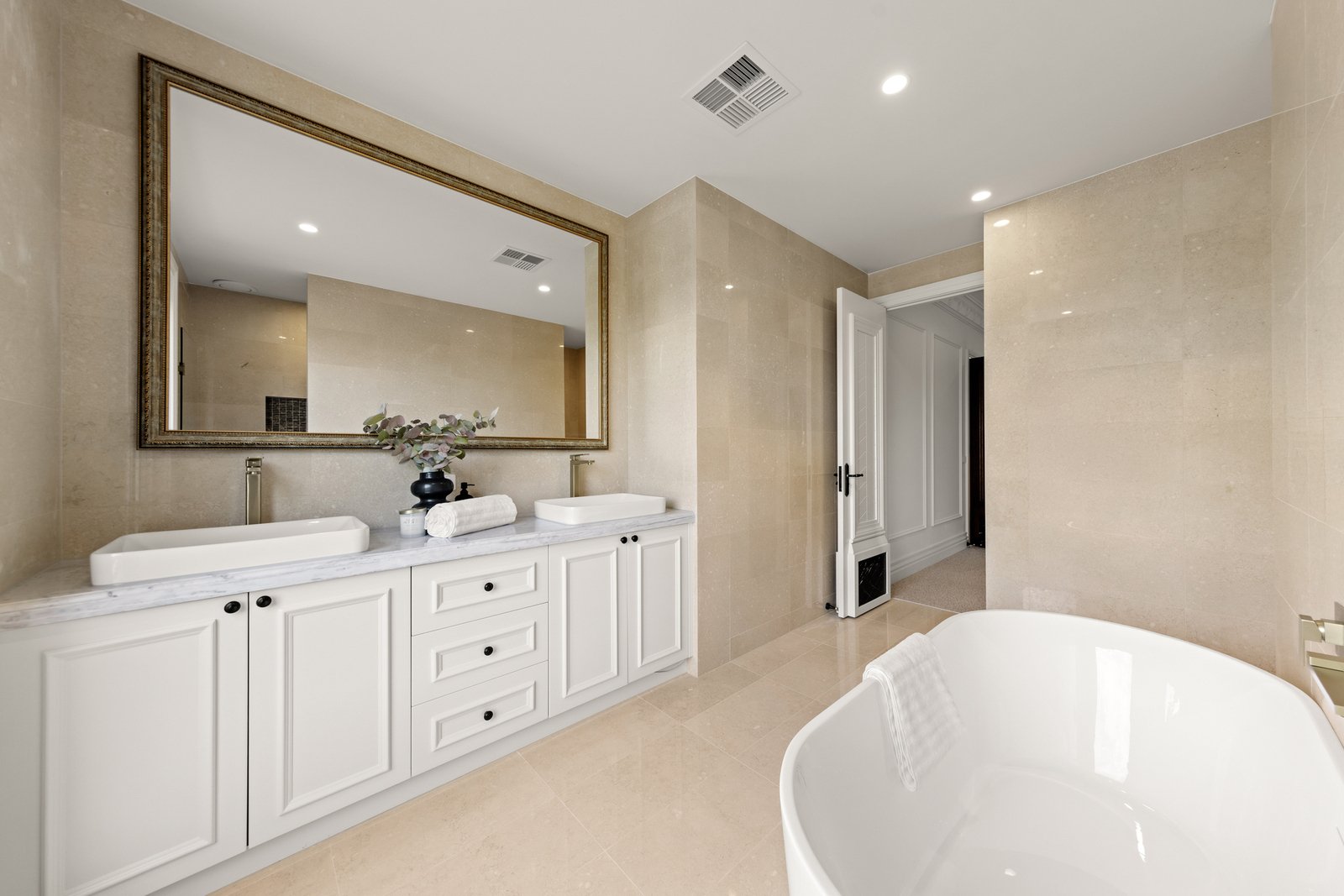 Natural marble continues throughout the residence, bringing a consistent sense of high-end refinement that elevates both kitchens and bathrooms into hotel-inspired spaces of calm luxury. The home’s attention to detail is not just visual, but thoughtful—everything feels considered, from the scale of the rooms to the way the home transitions between everyday comfort and formal elegance. Multiple living zones create flexibility for families of all stages, allowing for relaxed family time, private retreat spaces and effortless entertaining, while the overall layout ensures connection without compromise—so everyone can enjoy their own space while still coming together naturally.