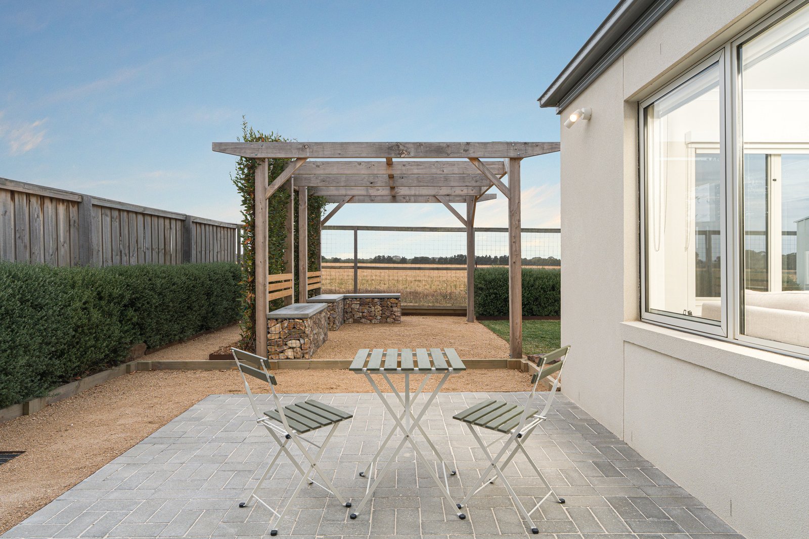 The main bedroom features g a walk-in robe and a stylish double vanity ensuite. Two additional bedrooms include built-in robes and are serviced by a central bathroom and powder room. Enjoy seamless indoor-outdoor living as the dining area opens to a generous alfresco with pergola, overlooking a great-sized backyard complete with a garden shed and peaceful paddock views, creating a wonderful sense of space. The north-facing backyard ensures an abundance of natural light throughout the day. Practical features include excellent side access for trailers, caravans or additional parking, a double garage with internal access, and ducted heating and cooling for year-round comfort.