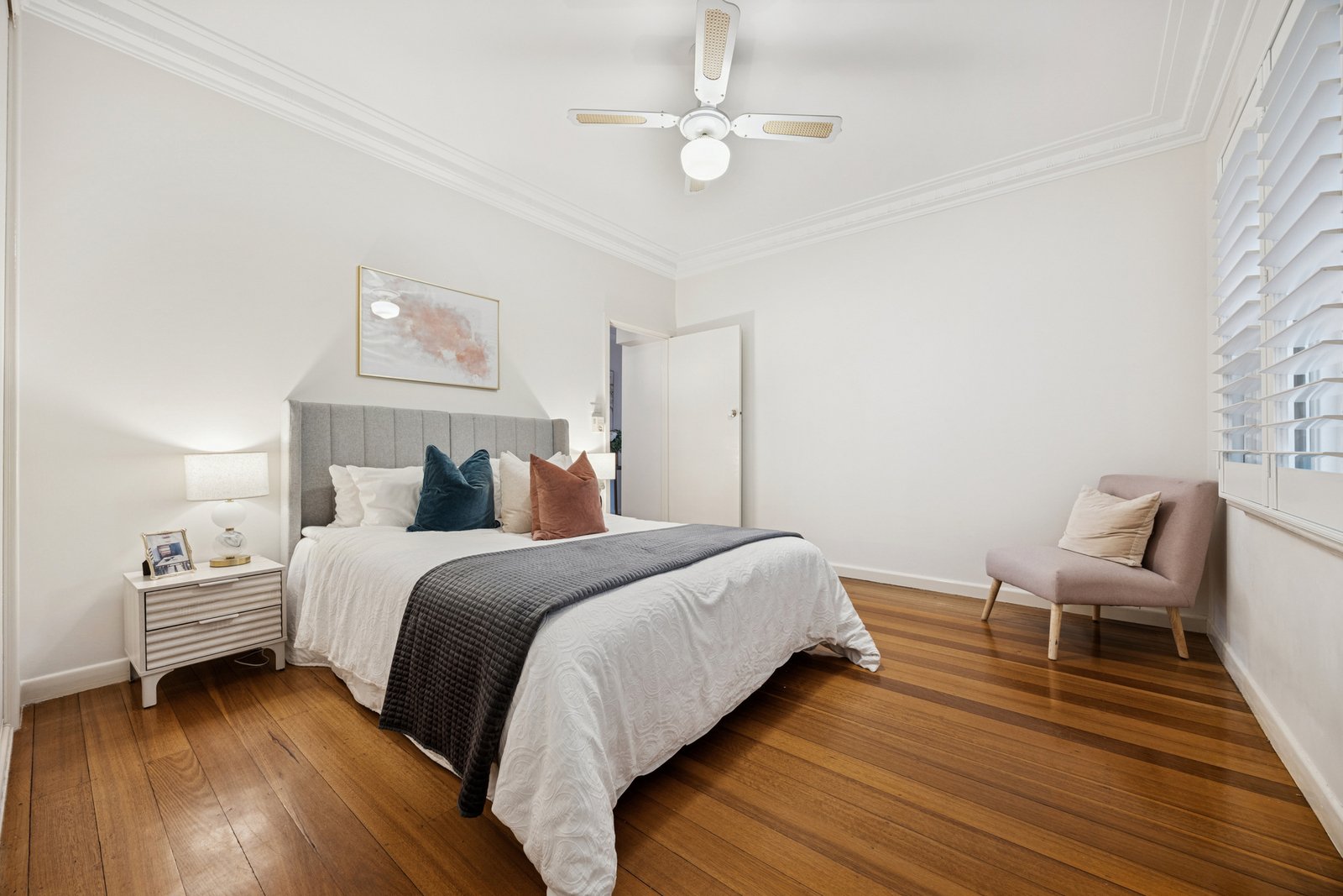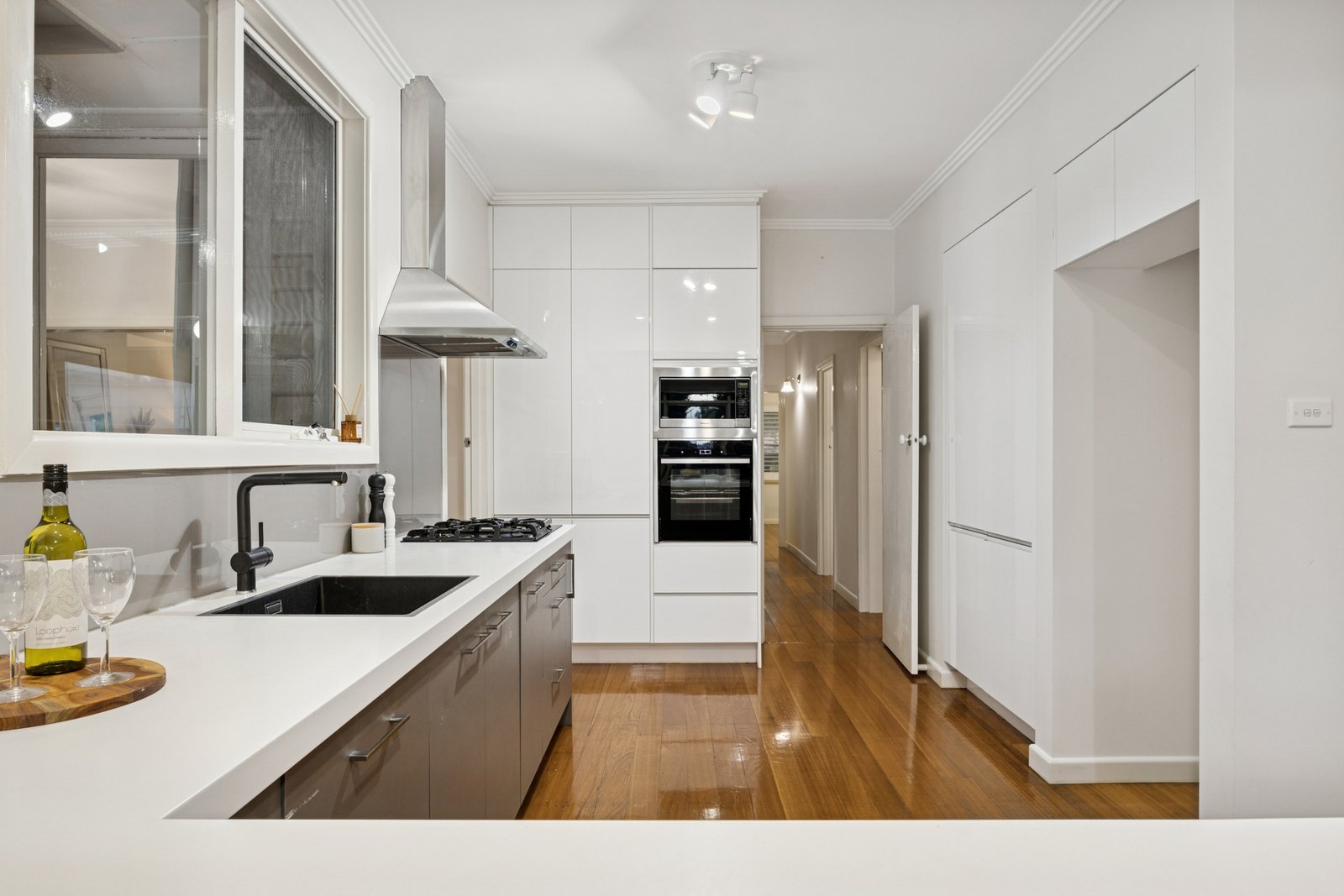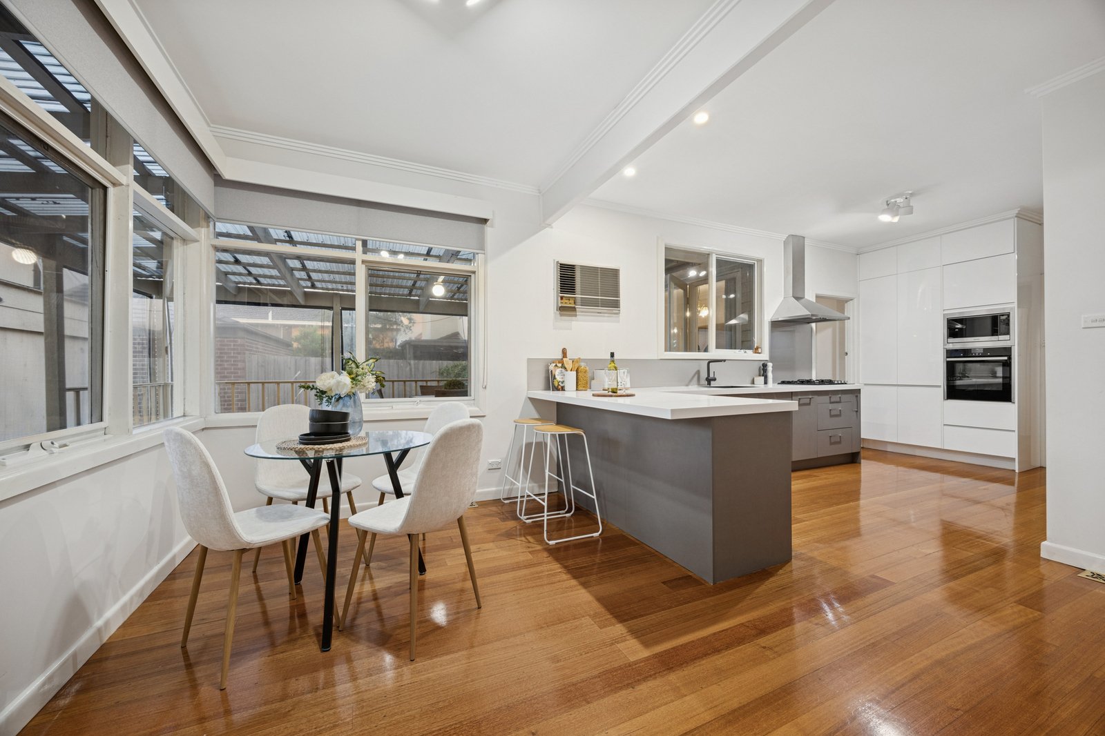 Impeccably presented throughout, the home showcases fresh paintwork, polished hardwood flooring and quality window furnishings. Year-round comfort is assured with ducted heating downstairs, multiple split system air conditioners across both levels, additional cooling in the kitchen area, ceiling fans in select bedrooms and excellent storage options including under-stair space.
