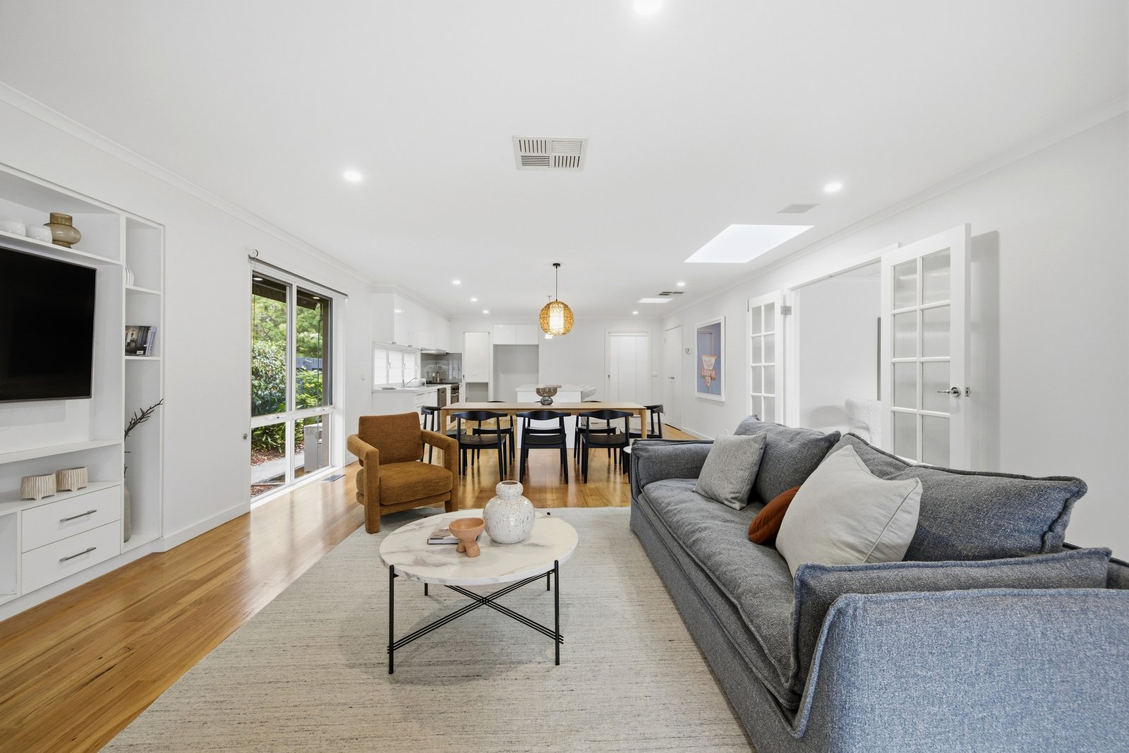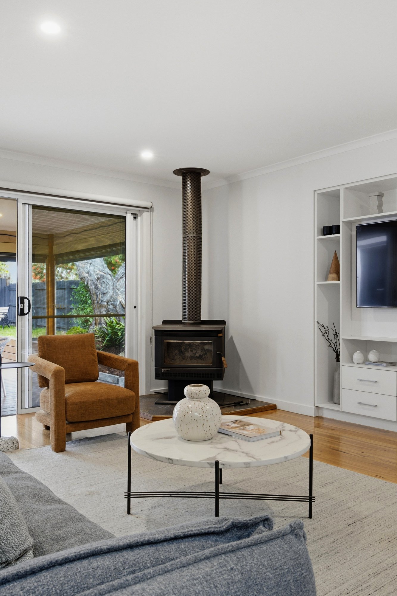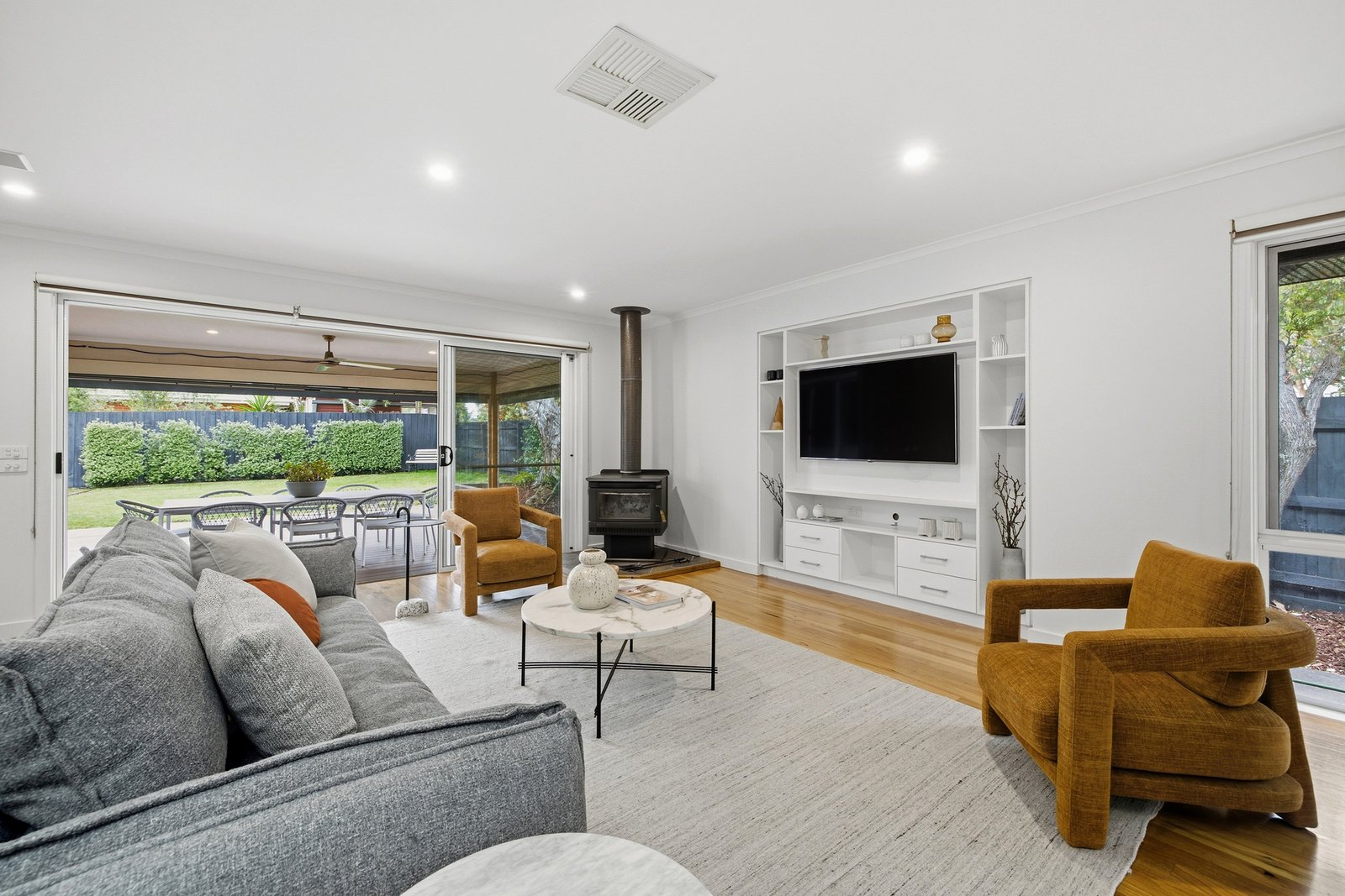 The lifestyle is centred around a huge open plan entertaining area that spills from a glorious kitchen with quality appliances, an island bench and walk-in pantry and out to the oversized sheltered alfresco deck. Creating the perfect indoor-outdoor flow for year-round events, this space is also accessed from a separate living room – while the garden offers room to add a pool if desired (STCA) and has gated access straight to the park. A versatile separate studio boasting a wood-heater, air-conditioning & wall of wardrobing is an ideal fourth bedroom for guests or teens.