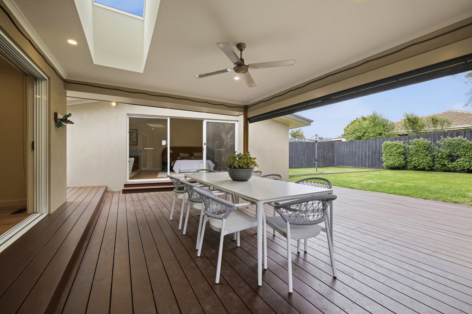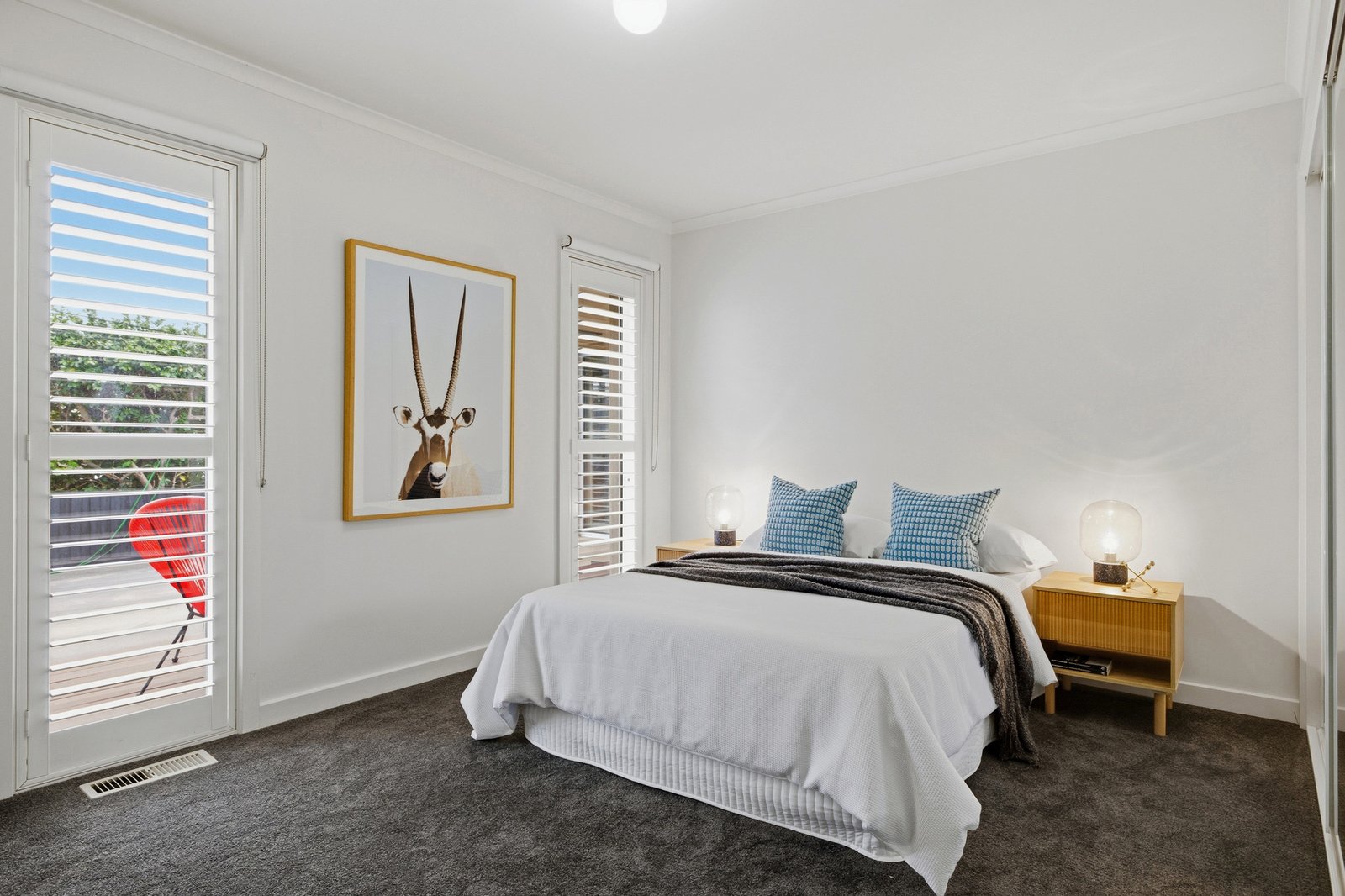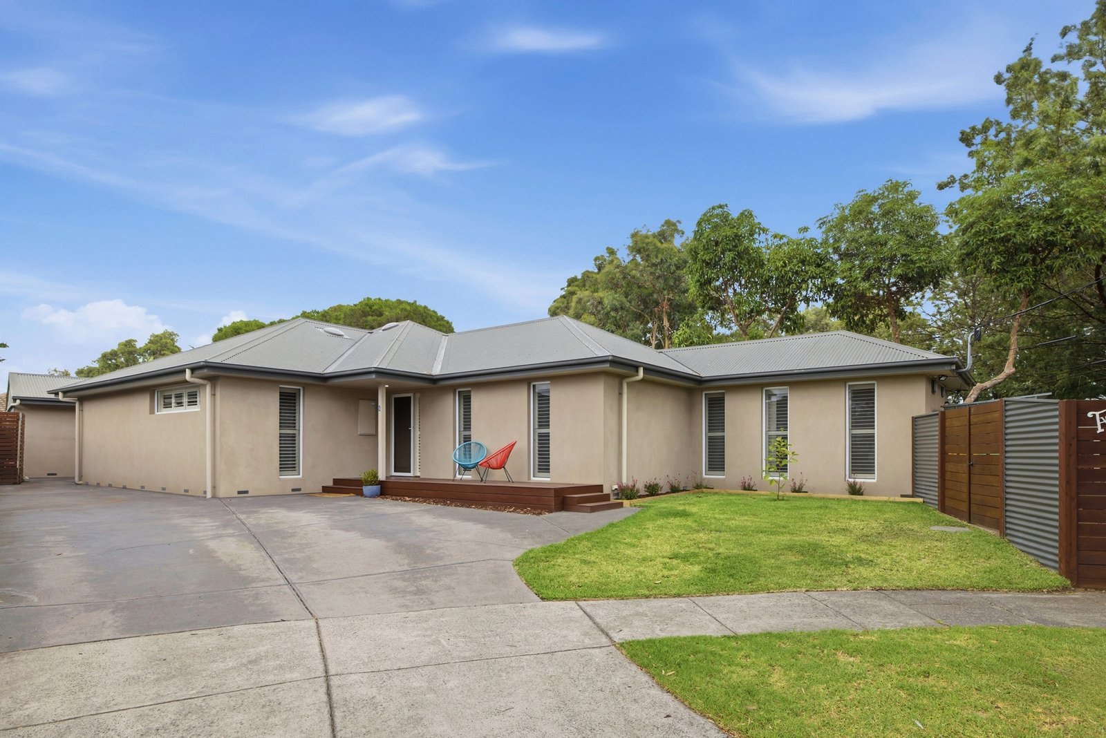 Inside, the main bedroom is peacefully positioned and benefits from walk-thru robes to a stylish fully-tiled ensuite with black fittings and cool reeded glass. The remaining two double bedrooms (BIRs) are zoned together along with the modern family bathroom, while a valuable fitted study, laundry leading out to the yard, ample internal storage and ducted heating/cooling are all offered. Wrapped up by a water tank, garden utility area with sheds plus onsite parking, this is a complete family package.